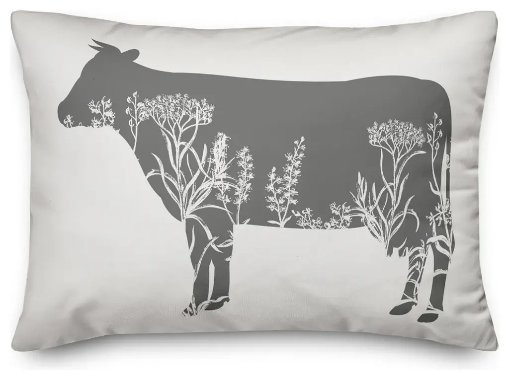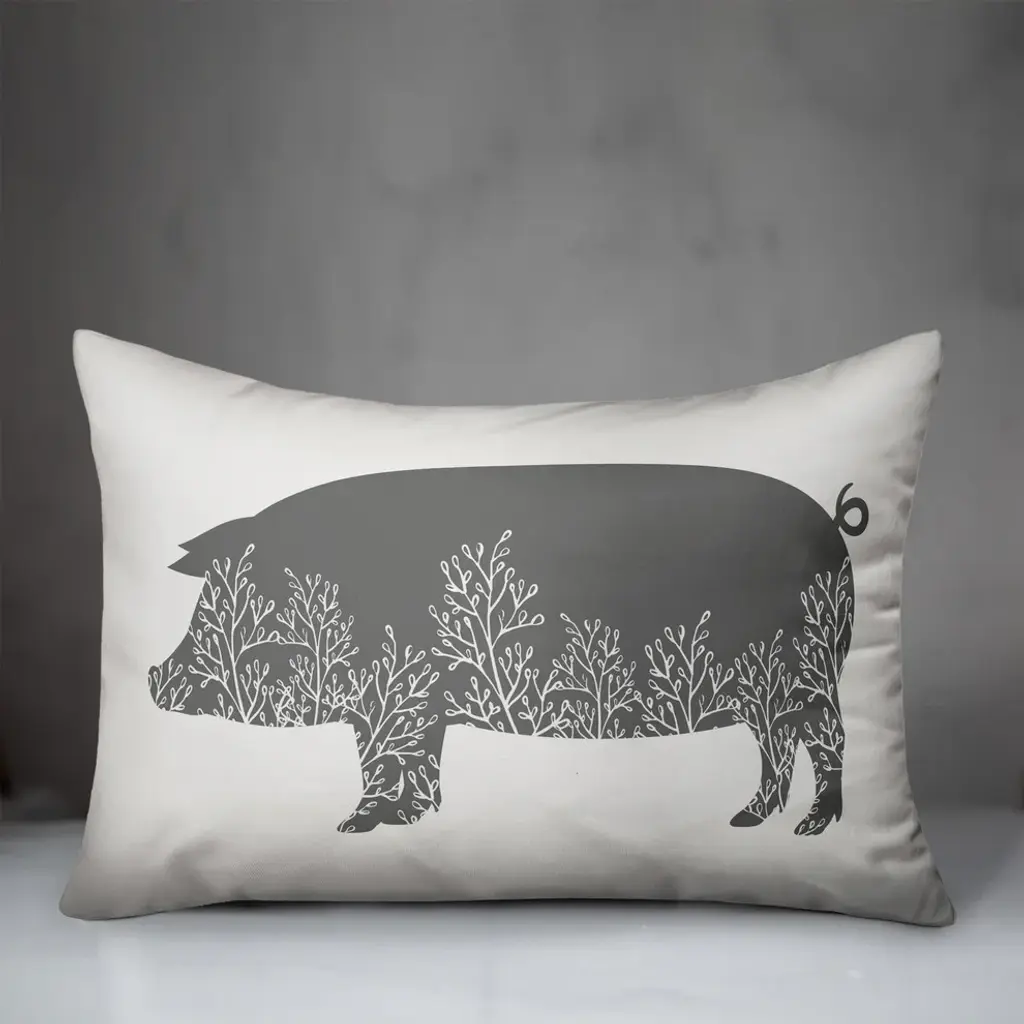 Floral Gray Pig 14x20 Lumbar Pillow