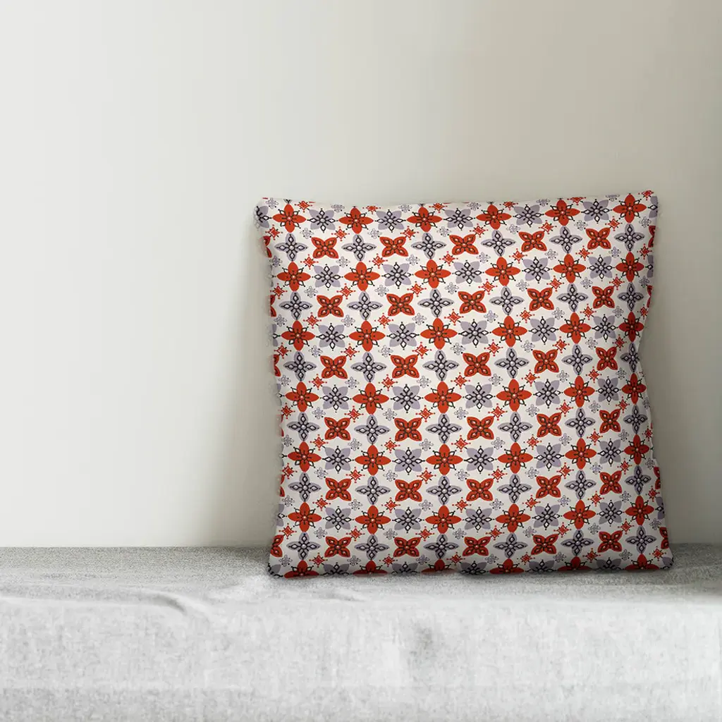 Folk Floral Pattern In Red And Purple Throw Pillow