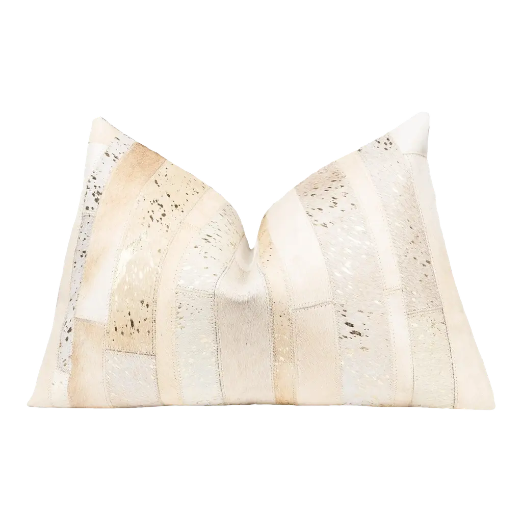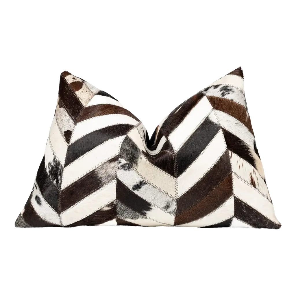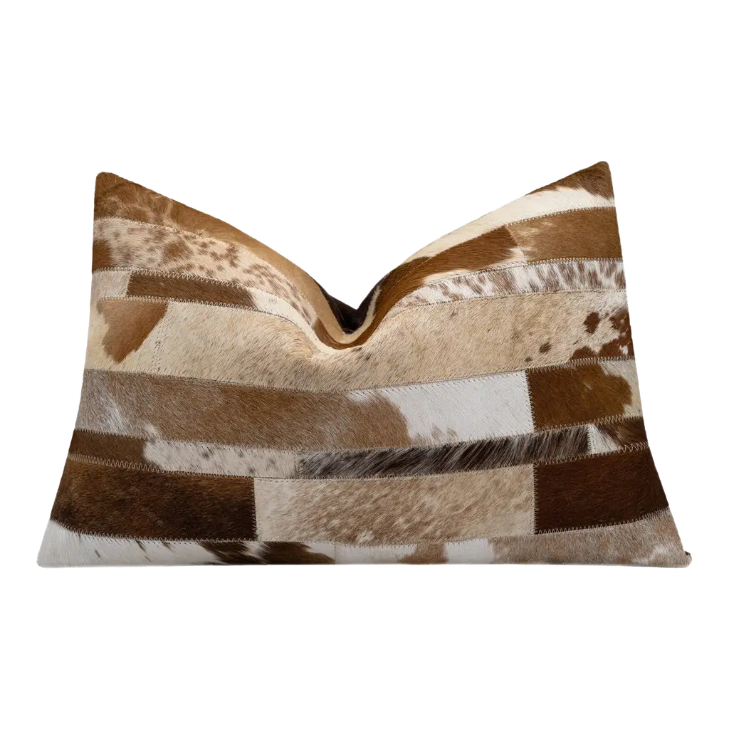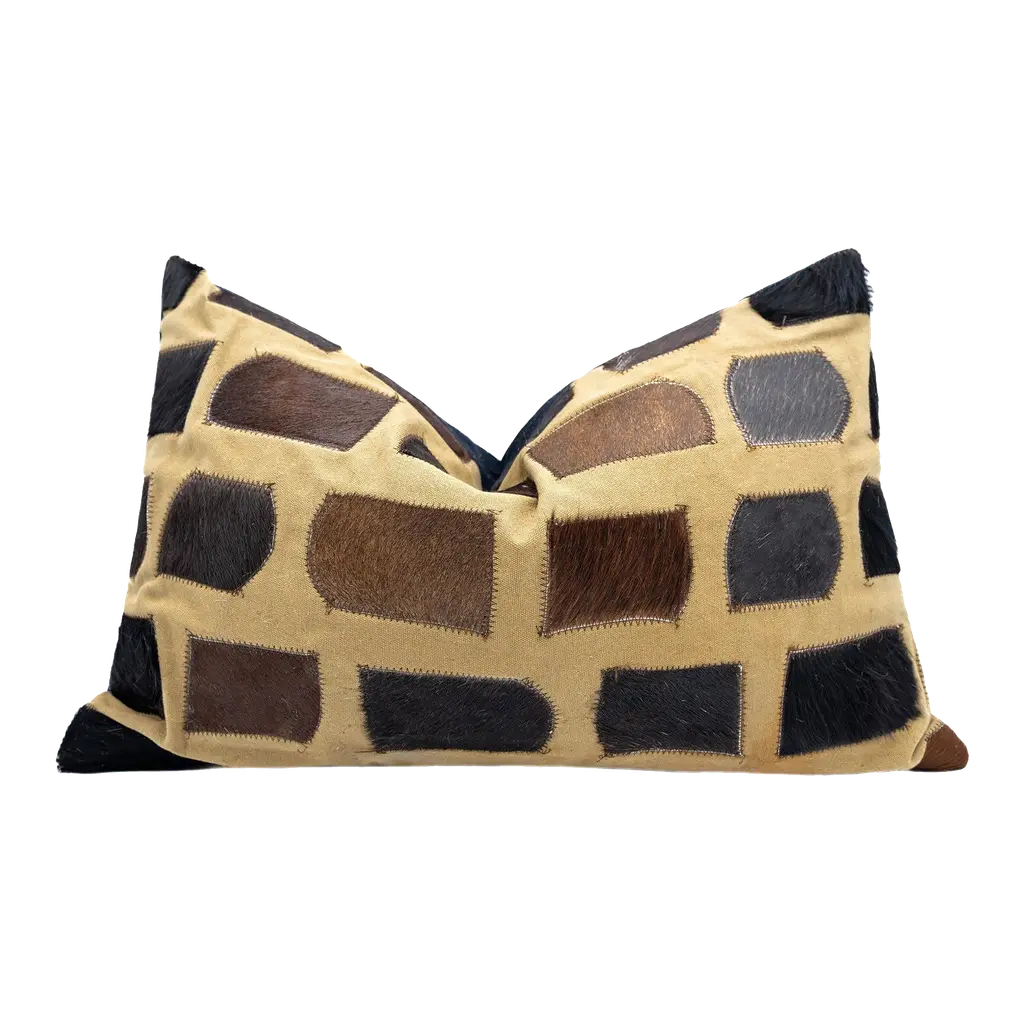 Authentic cowhides are pieced together forming a supportive lumbar pillow designed to bring warmth to any space. A variance in color, shape, and pattern demonstrates the one-of-a-kind nature of these beautifully exotic accessories, ensuring that no two pillows are the same. Reflective of ranchers' unique brandings, markings are to be expected and speak to the Argentinian origin of each hide. Crafted of hair-on-hide (Argentina) treated using a chromium-free processing that ensures eco-friendly coloring without the use of dyes Cotton backing Zip closure at back Removable cotton insert Approx. 48"L x 5"W x 12"T Item Weight (Lbs.): 3.9 Professional cleaning recommended, vacuum periodically Made in Argentina Shipping Direct from Vendor, usually ships within 17 business days. About Four Hands: Four Hands is a dynamic lifestyle brand that offers a diverse range of furniture and home decor items. With a focus on innovative design and quality craftsmanship, Four Hands creates pieces that blend modern aesthetics with traditional craftsmanship. From stylish sofas and chairs to unique accent pieces and accessories, each product is thoughtfully designed to inspire and elevate any living space. With a commitment to sustainability and ethical practices, Four Hands is dedicated to creating beautiful, functional, and responsibly made products for the modern home.