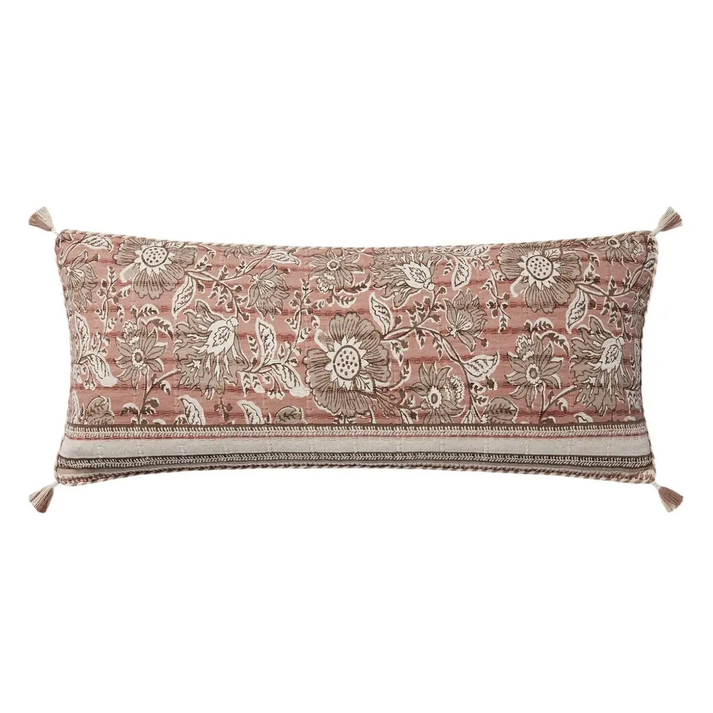 French Country Blush Cotton Down Fill Decorative Lumbar Pillow - 13x21
