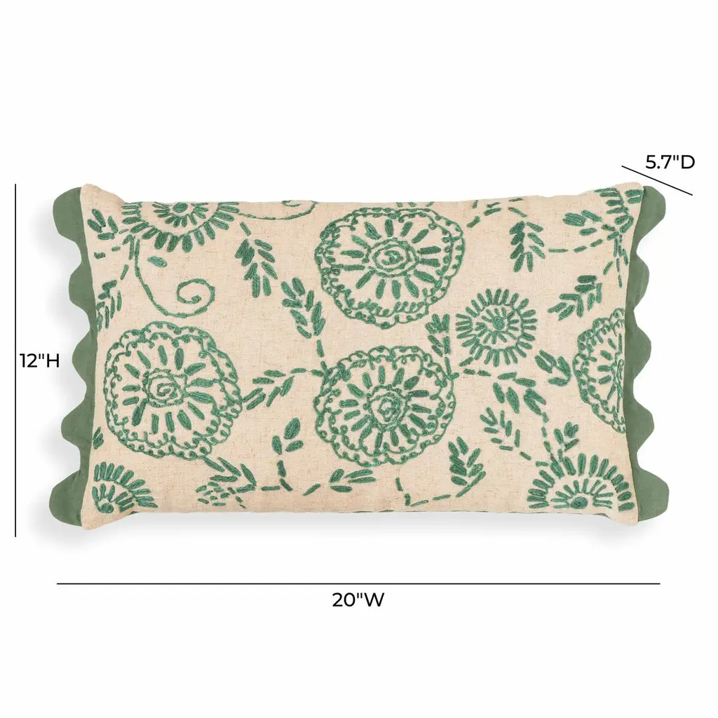 Gavric 20x12 Embroidered Cotton Flex Scallop Trim Lumbar Pillow