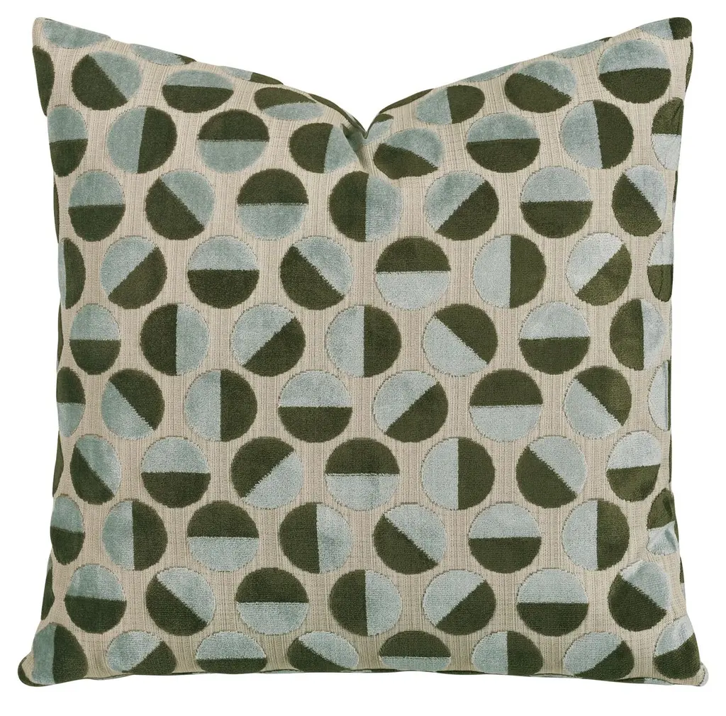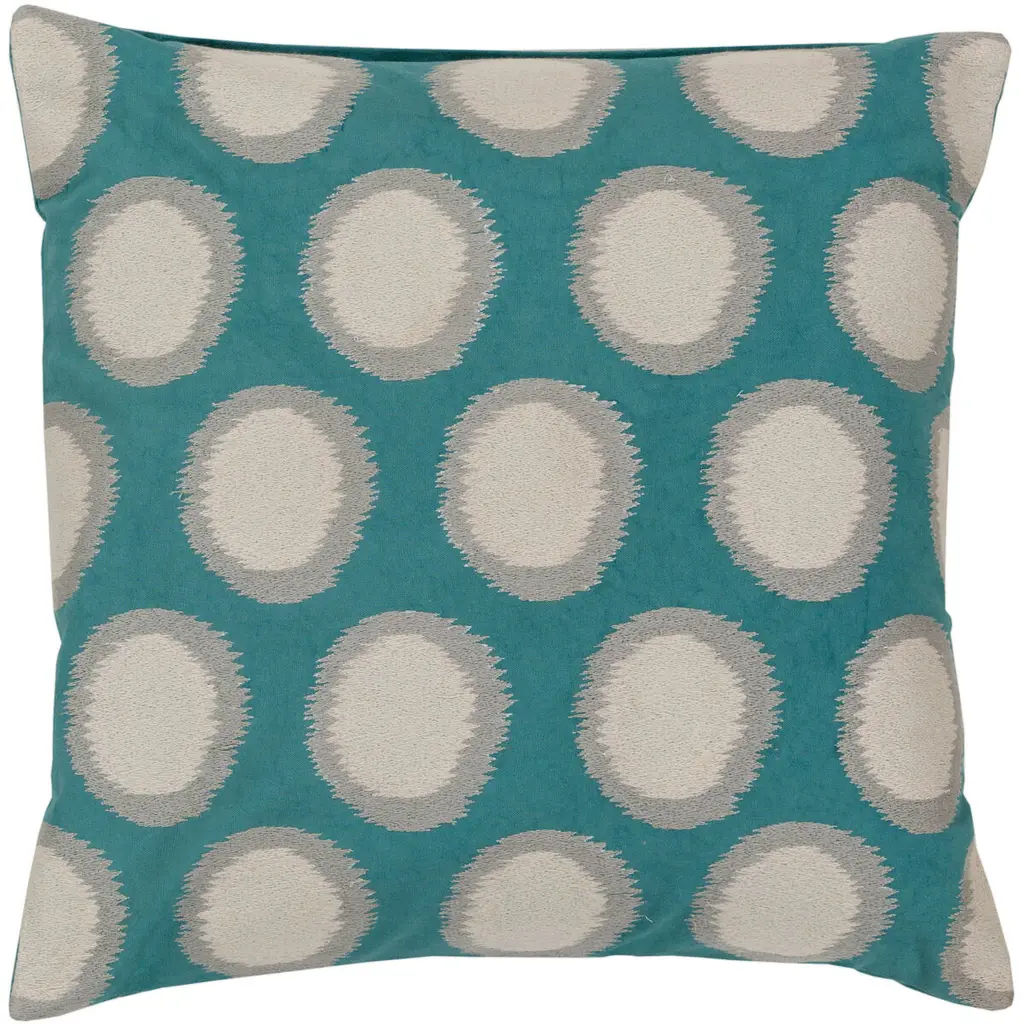 Exclusive to One Kings Lane: Colored circles are stitched atop the canvas fabric on both sides of this lumbar pillow, adding texture and mod panache. Made in the USA, the pillow is amply filled with plume feathers for sumptuous loftiness. Hidden zipper closure.