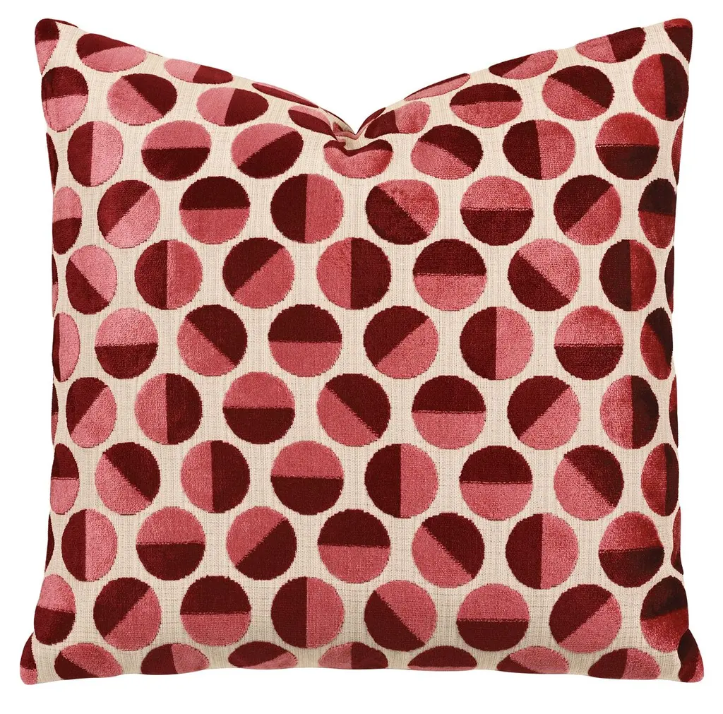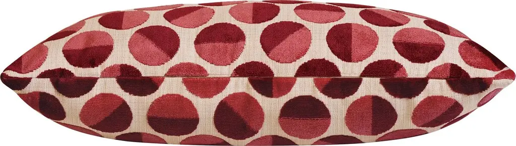 Exclusive to One Kings Lane: Colored circles are stitched atop the canvas fabric on both sides of this lumbar pillow, adding texture and mod panache. Made in the USA, the pillow is amply filled with plume feathers for sumptuous loftiness. Hidden zipper closure.