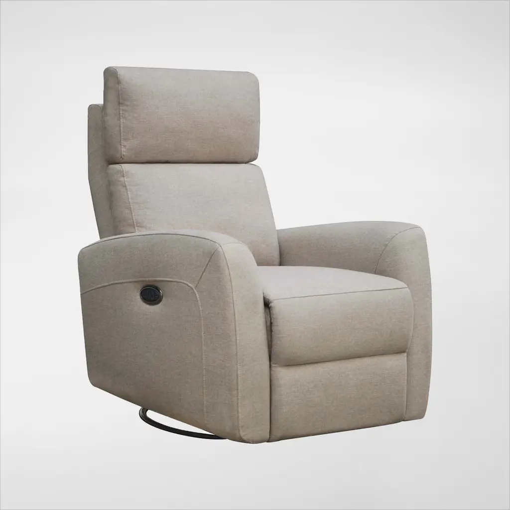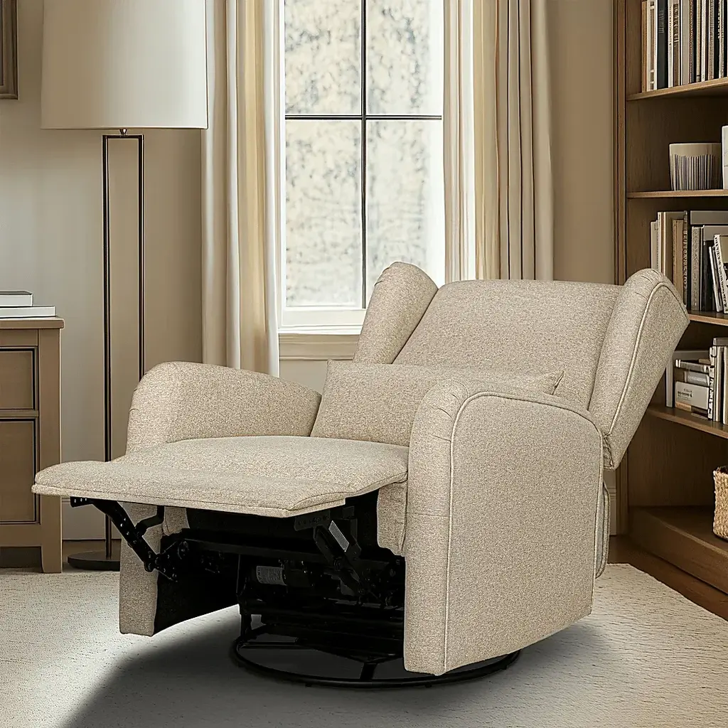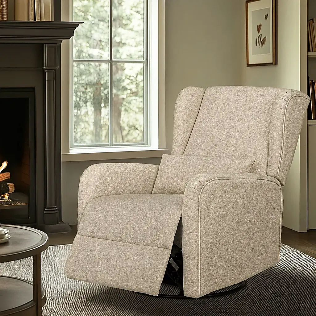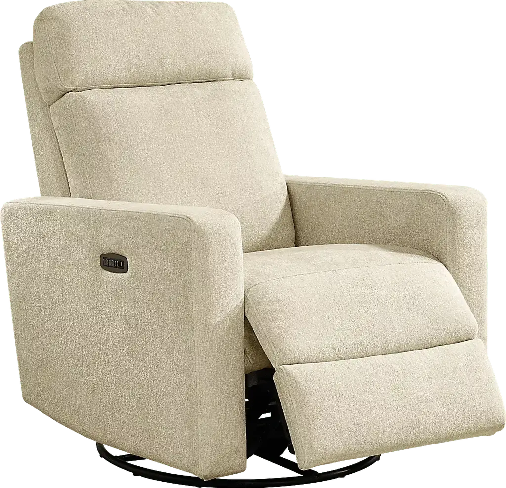 The Globeex beige power swivel recliner features a classic wingback design that brings timeless charm to any space. It offers quick reclining at the touch of a button, adjustable angles from 90 degrees to 145-degree, 270-degree swivel, and a gentle glider motion for full relaxation. The rounded arms, plush back cushion, high-density seat, and included lumbar pillow provide exceptional comfort and support. Upholstered in durable, water-resistant linen-look fabric, it's easy to maintain and complements modern, transitional, and farmhouse styles. The built-in USB and C-port charging station keeps devices powered, while the side storage pocket holds remotes and essentials. Built with solid wood, plywood, and a durable metal mechanism, it supports up to 300 pounds. Easy, tool-free assembly makes setup simple. Customer assembly is required.