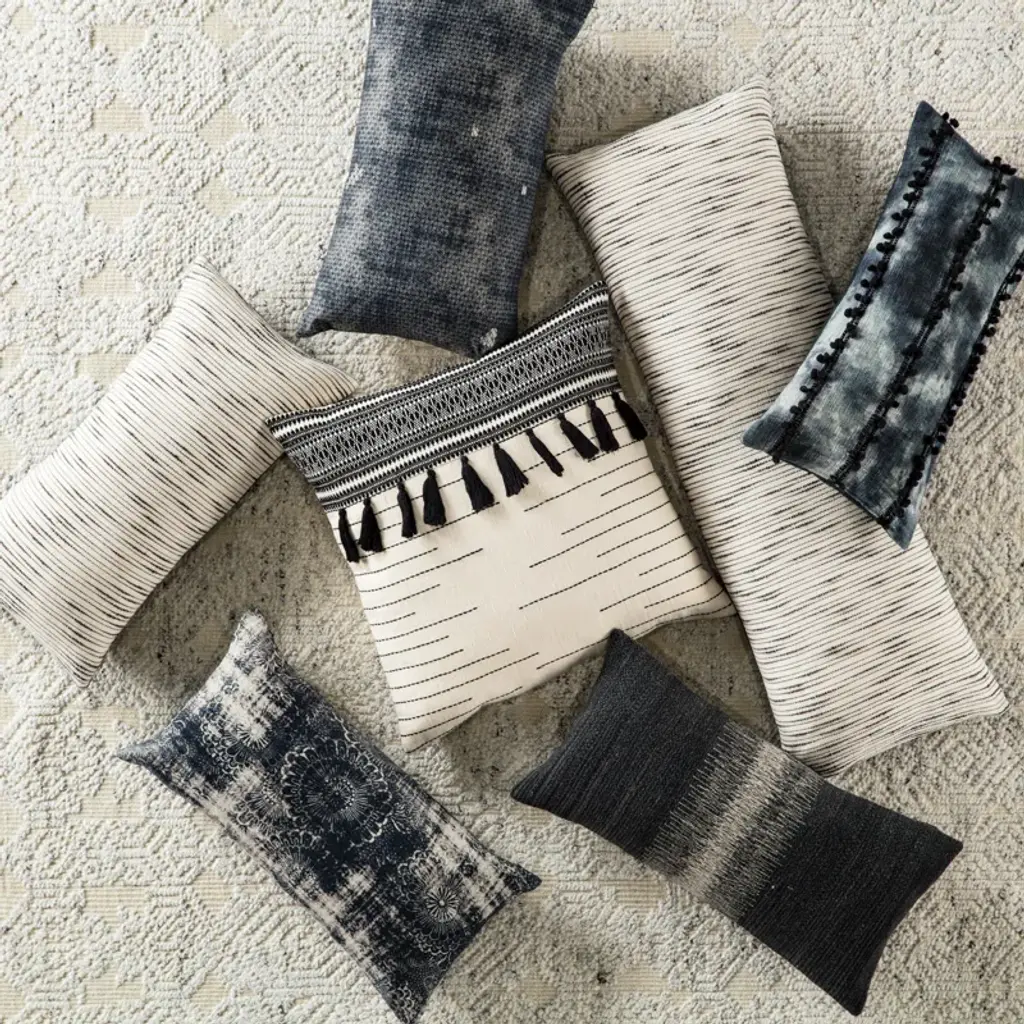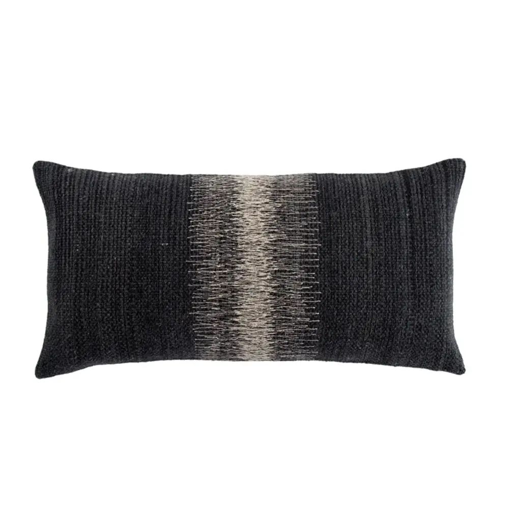 This lumbar pillow features a textured wool and cotton blend and a dynamic embroidered design with rich tones of gray, black, and ivory. The neutral tones pair easily with all sorts of color palettes, and the elegant, understated pattern has just enough to draw the eye without pulling too much focus. This lumbar pillow also features a solid backing that's different from the front design. Plus, you get to choose the fill material, so you can customize how firm (polyfill) or plush (feather fill) your pillow is. The cover is easy to remove with the zipper closure.