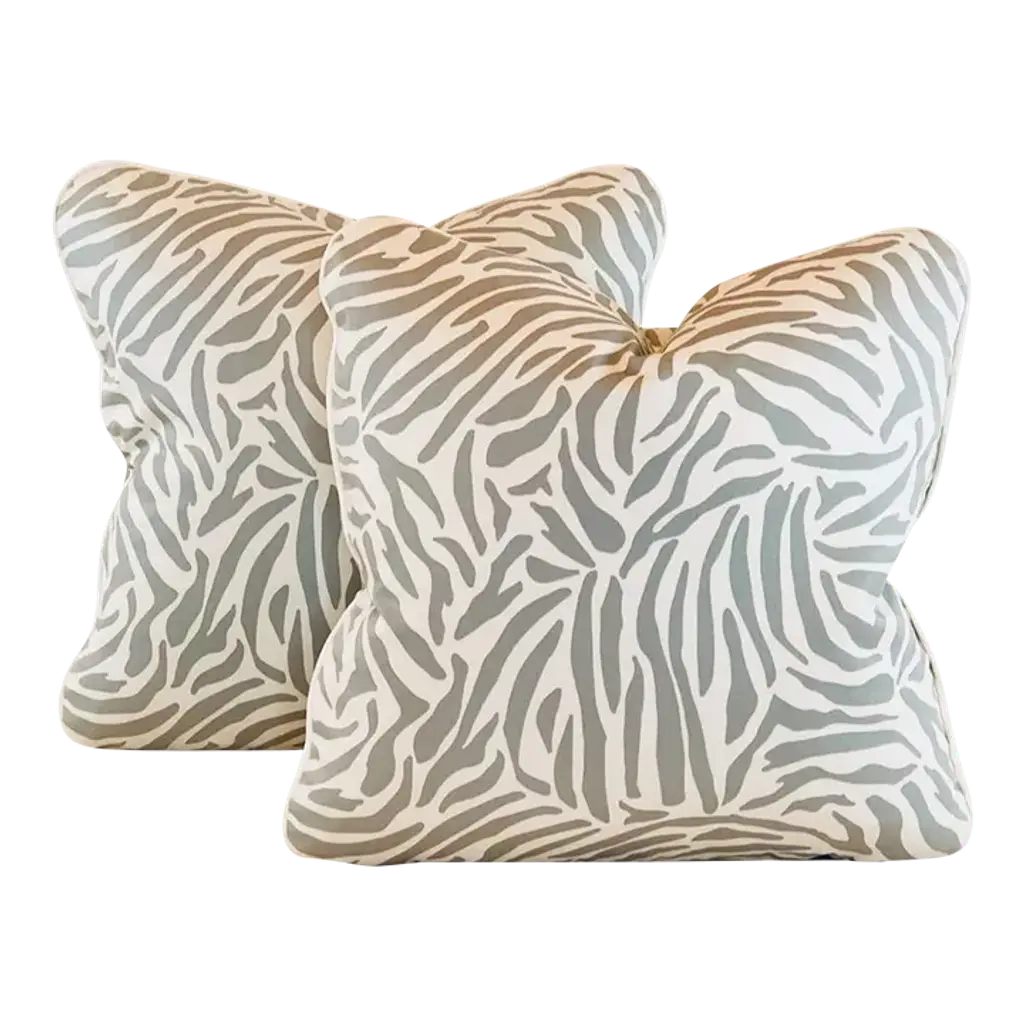 Gray Cream Velvet Zebra Print Throw Pillow With Feather Down Insert