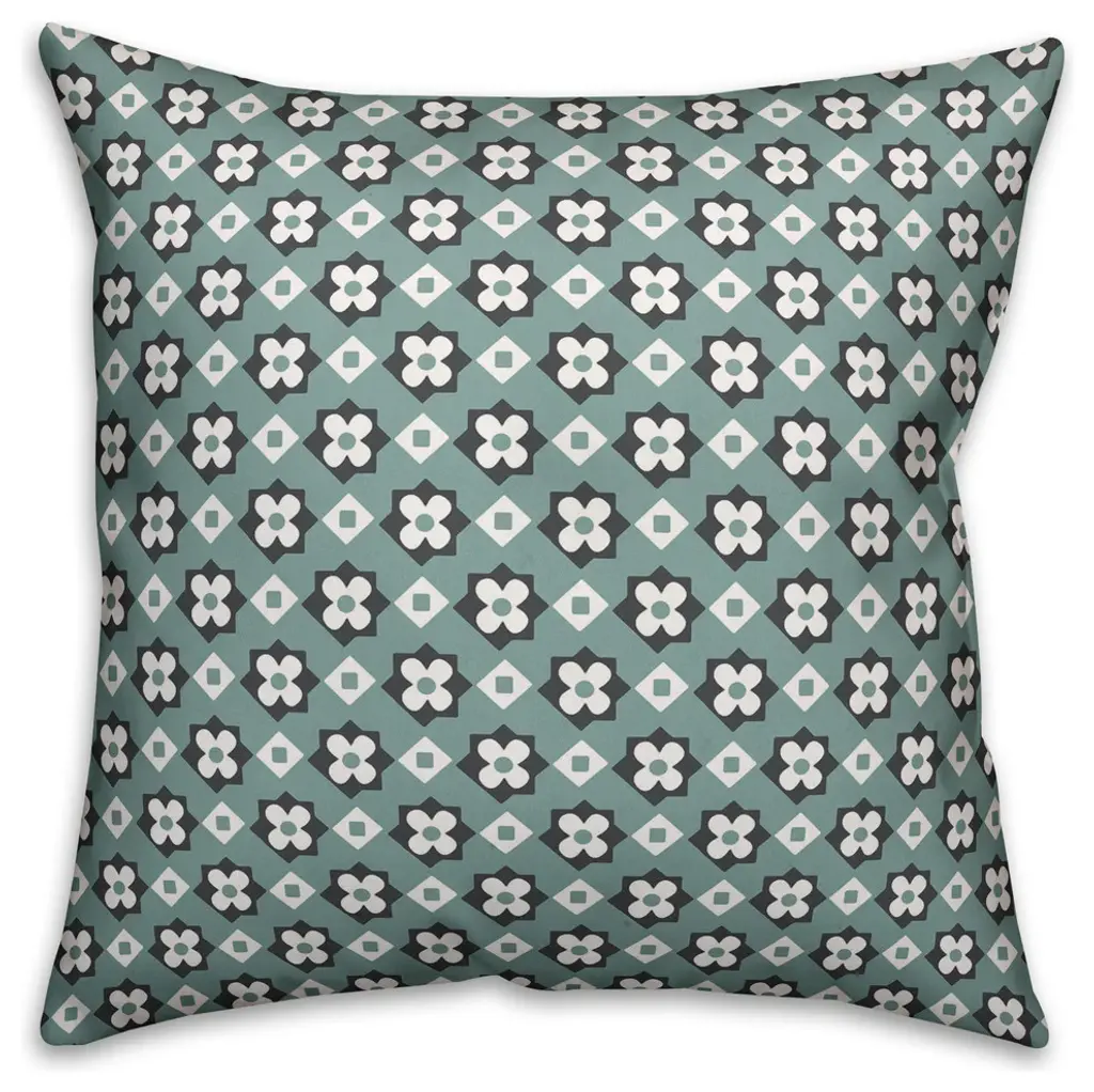 Green Flower Pattern Throw Pillow