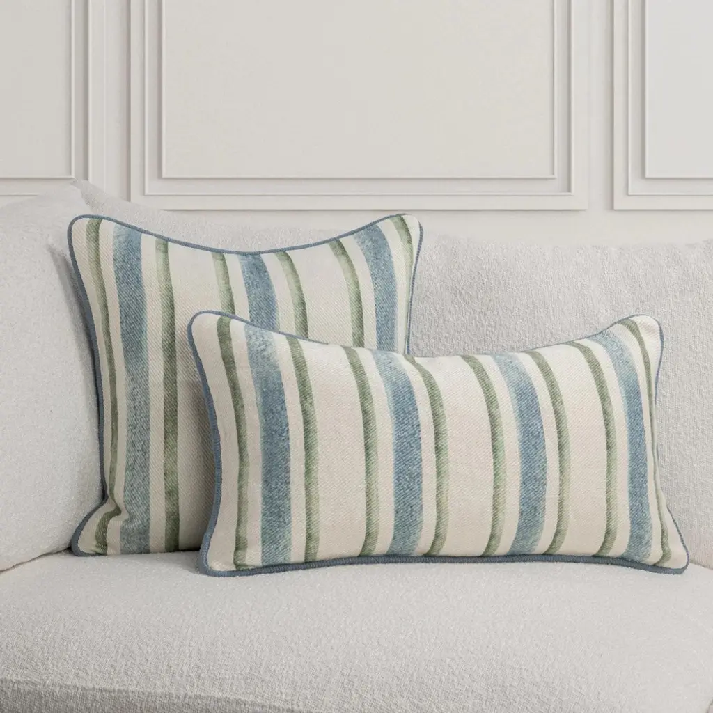 Huck Coastal Beach Multi Colored Linen Striped Lumbar Pillow - 14x26