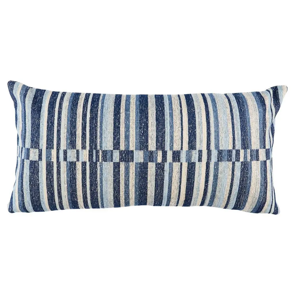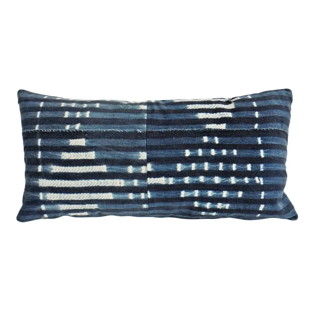 Authentic vintage indigo Mali textile striped pillow. Fabric on front and back with down insert and zipper. Visible hand stitching to be expected. Each unique and one of a kind.