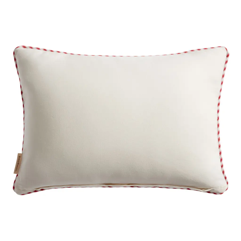 Add a true piece of art to your holiday home decor with this intricately made embroidered pillow with a scene from The Nutcracker. This exclusive lumbar pillow features Clara, The Sugarplum Fairy, The Mouse King and The Nutcracker himself stitched with metallic thread on an ivory base. Made of cotton, this accent pillow comes with a removable insert and is finished with red and white twisted piping.