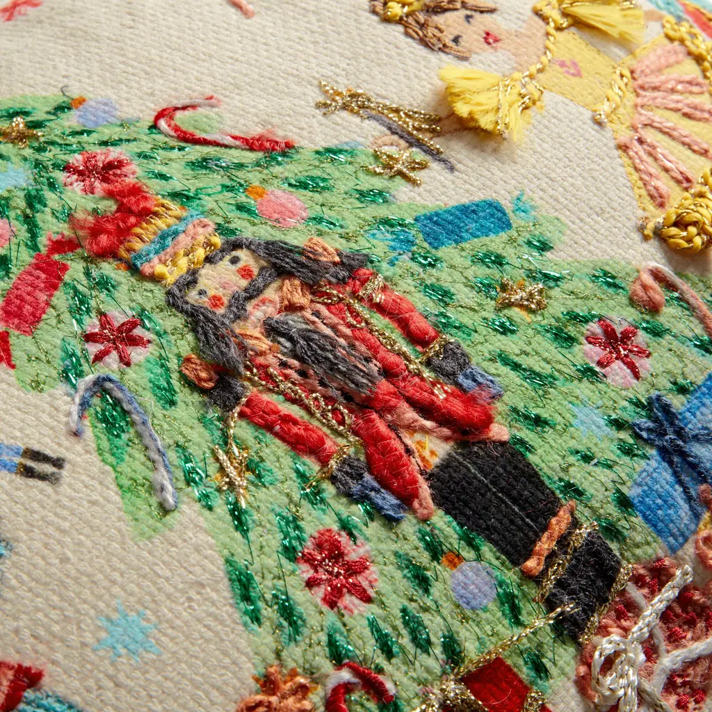 Ivory Multicolor Embroidered Nutcracker Lumbar Pillow