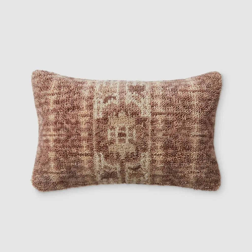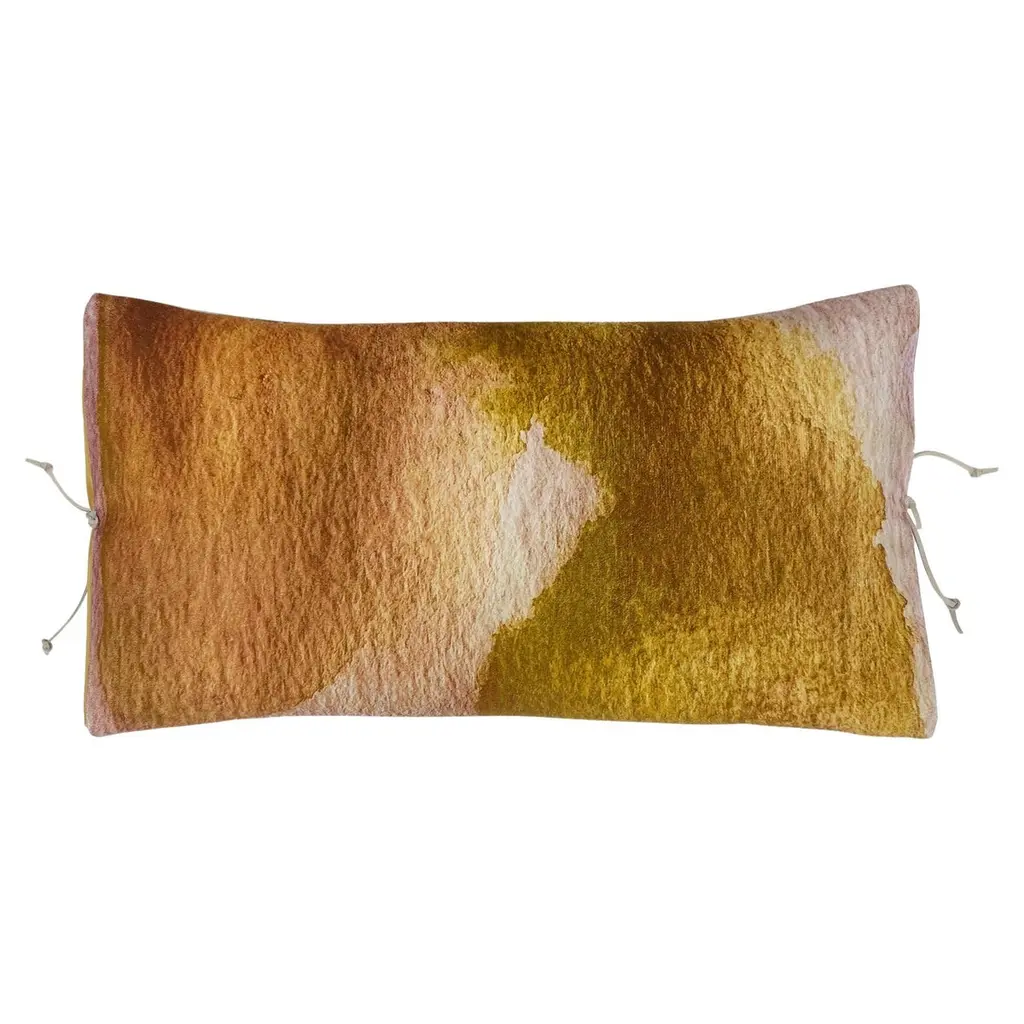 Pillow front in hand-painted, botanical plant-dyed felted wool fabric by JG SWITZER, backed with Sandra Jordan Prima Alpaca fabric in Italian Clay.Hidden zipper enclosureShips with insertDry Clean Only