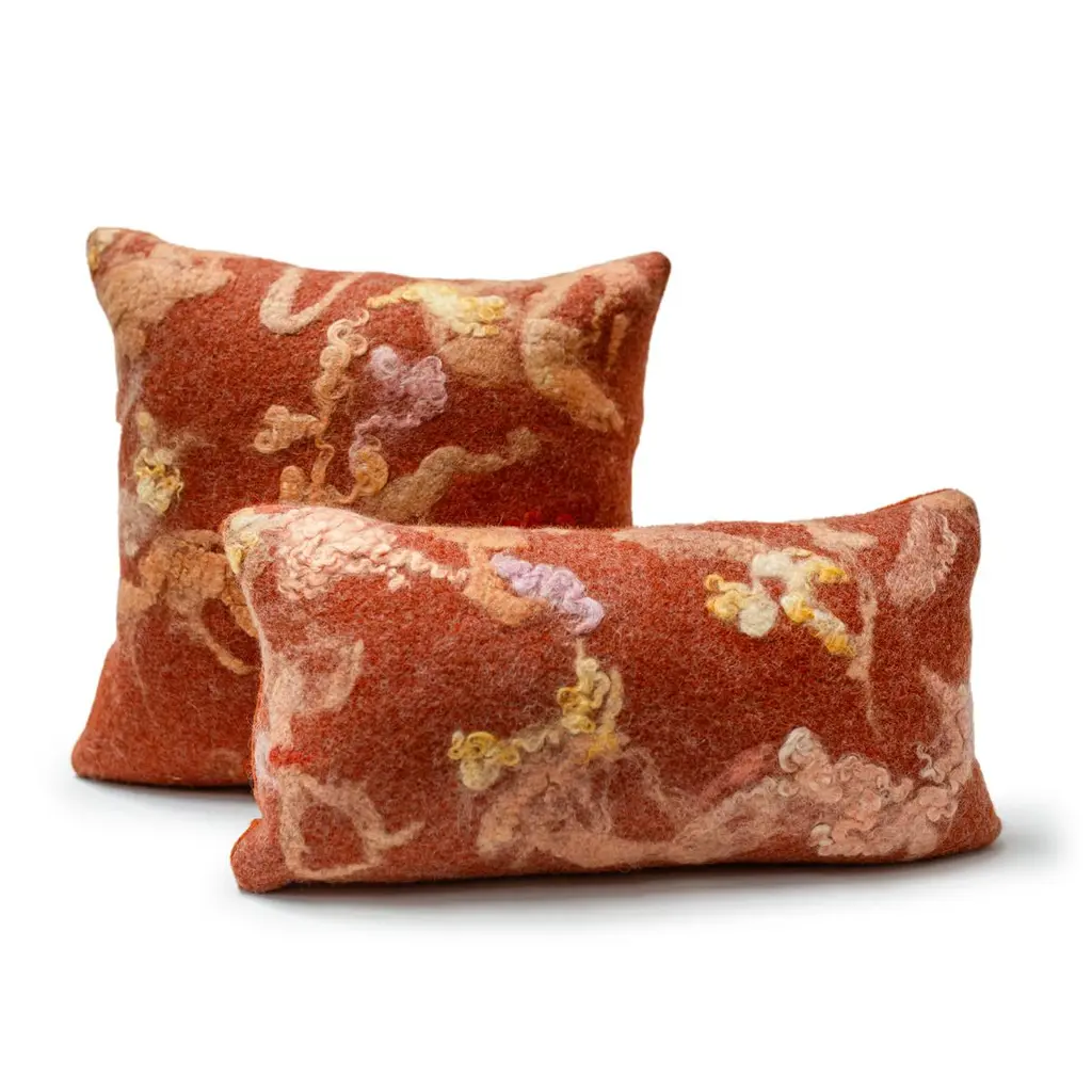 Jg Switzer Blood Orange Hand Felted Wool Lumbar Pillow