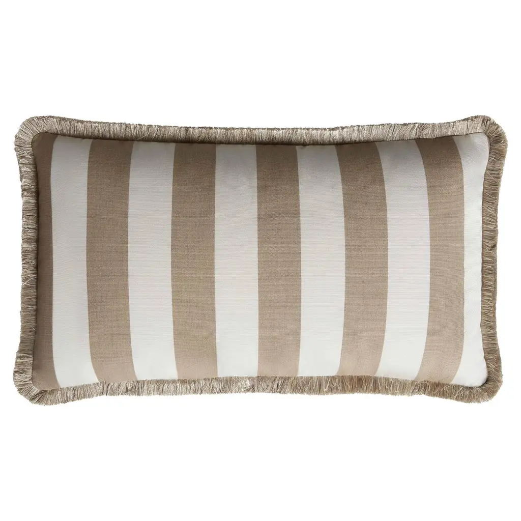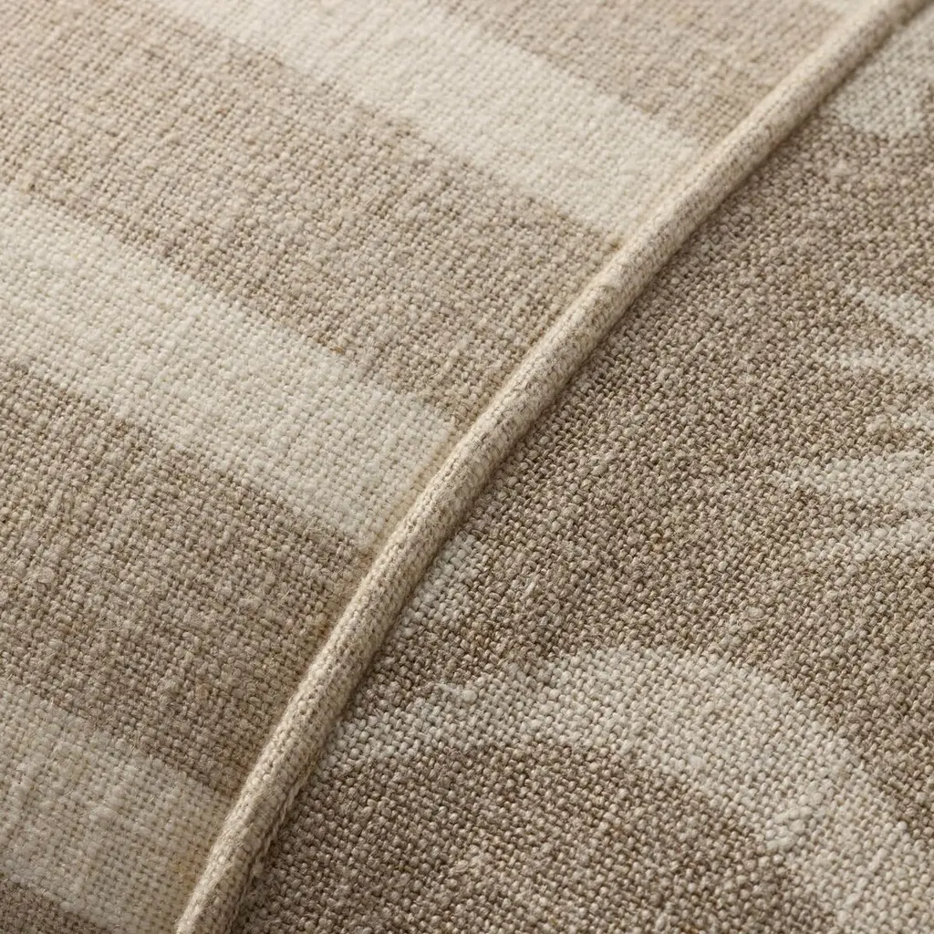 This linen throw pillow features an elegant floral and stripe design with double flange edges, perfect for farmhouse, coastal, or organic home decor. The 13” x 21” lumbar pillow is woven in India of linen and cotton.