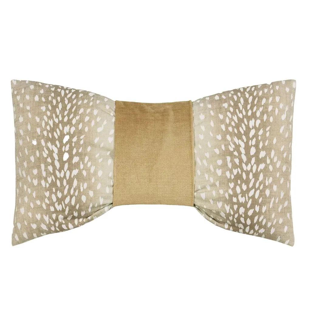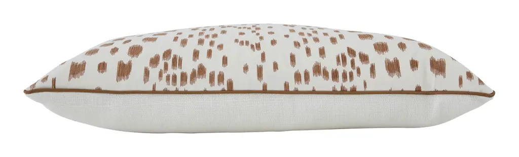 A modern take on animal print, our Les Touches Pillow brings a subtle pop of pattern wherever it goes. Crafted from white cotton, this pretty little lumbar pillow is covered with splotchy, cheetah-like spots in a neutral, tawny brown hue. We’ve finished it with matching brown piping, a solid white linen backing fabric, a hidden zipper closure and a luxe down and feather insert for a plush feel. Perfectly as a solo on a favorite armchair, Les Touches also looks lovely mixed in with other layers in a similar palette on the sofa or bed. •14" x 20" •cotton•solid white linen backing•matching piping on edges •hidden zipper closure •down and feather insert
