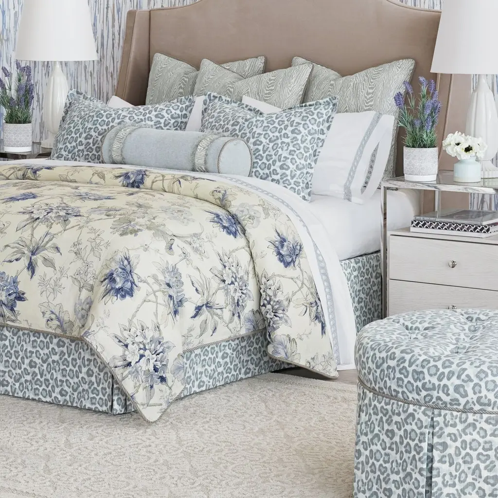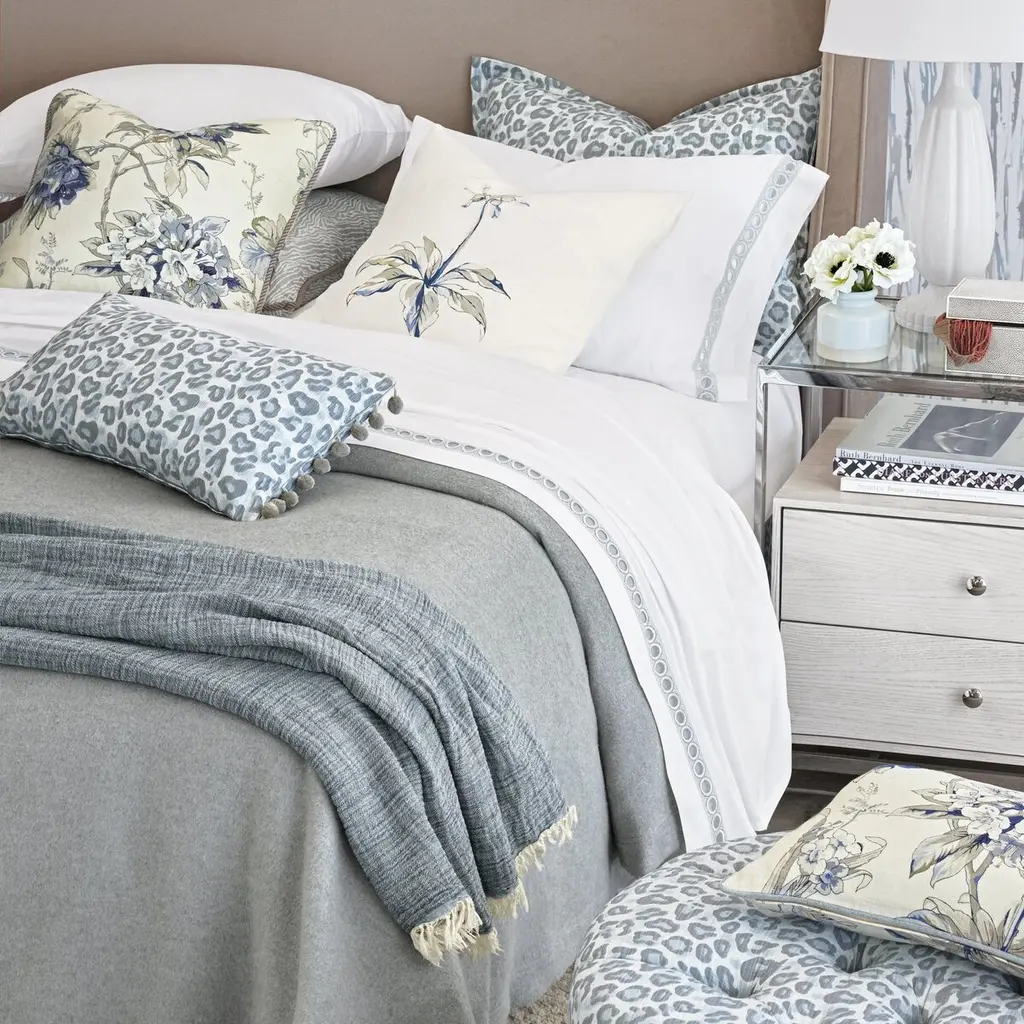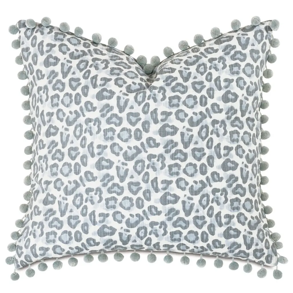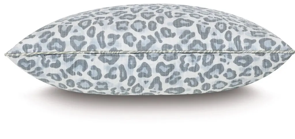 The blue-and-gray leopard print on both sides of this pillow makes it easy to get in touch with your wild side. Welt trim adds a tailored touch, while the plume-feather fill ensures luxe loftiness. Zipper closure.