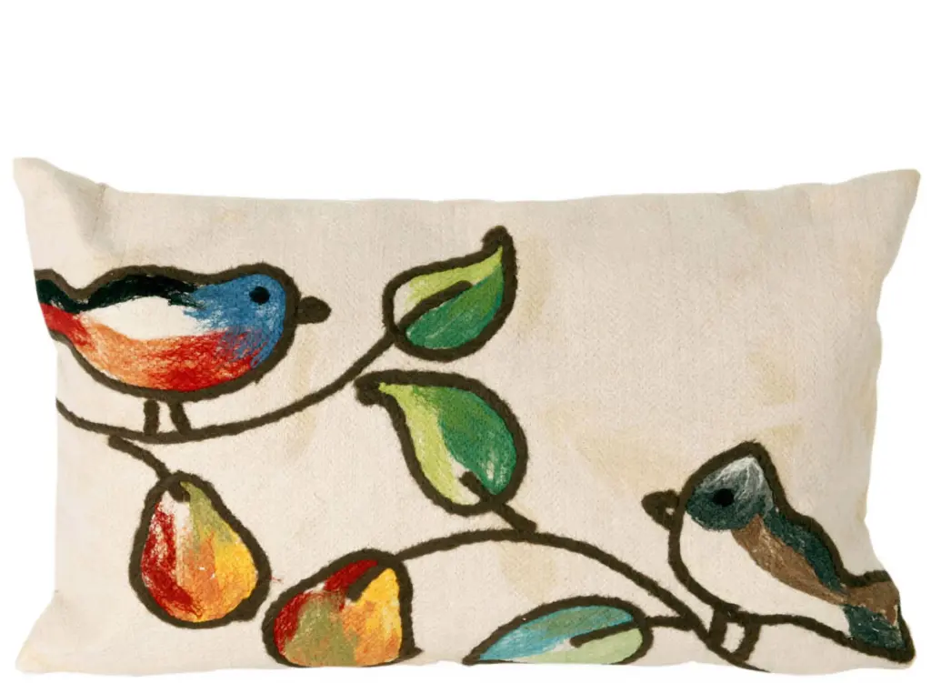 The highly detailed painterly effect on the Liora Manne Visions III Song Birds Pillow is achieved by Liora Manne's patented Lamontage process which combines handcrafted art, bright, three-dimensional fabric with cutting edge technology, in ivory. The 100% Polyester face makes this pillow suitable for indoor or outdoor use and easy to clean. It is easy-care and has a removable cover with a durable zipper closure. This versatile Lamontage pillow is ideal for use on any chair or sofa, and the artistic designs will enhance the d_cor of any room of the home.