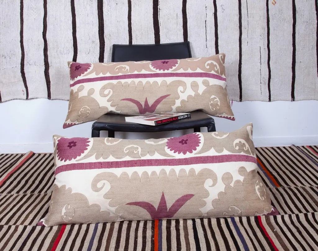 Lumbar Pillow Cases Fashioned From An Early 20th Century Uzbek Suzani