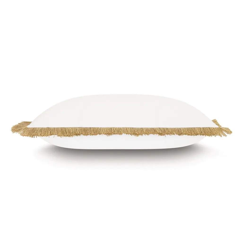 Designed by us and available only at One Kings Lane: This fringed pillow's neutral hues make it a welcome addition to any outdoor space. What's more, it's made of easy-to-clean fabric that resists fading, mildew, and dirt.