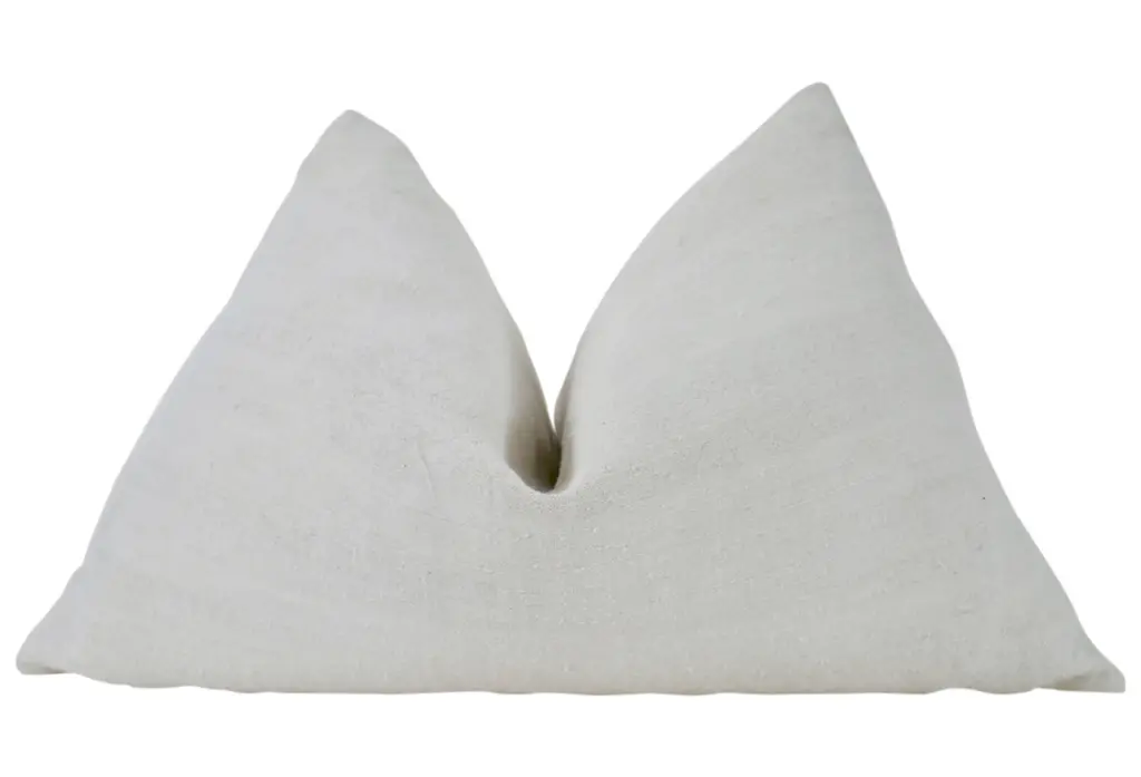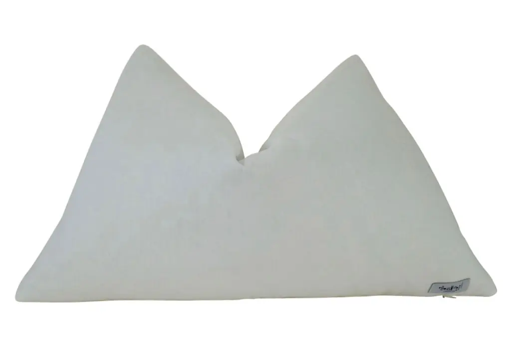 Cut and sewn by hand, this lumbar pillow features soft white cotton chenille on one side and solid white linen on the reverse. The feather-and-down fill provides long-lasting loftiness. Hidden zipper closure.