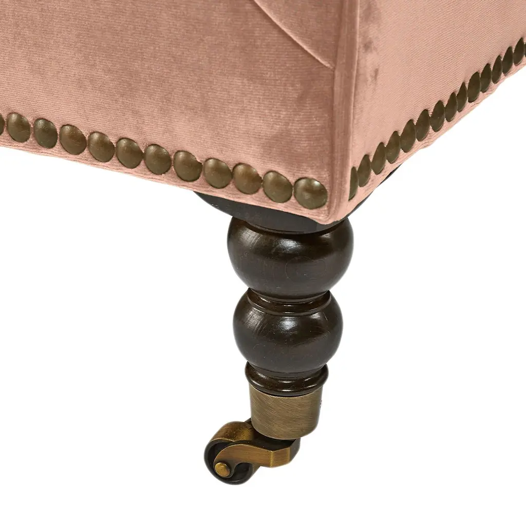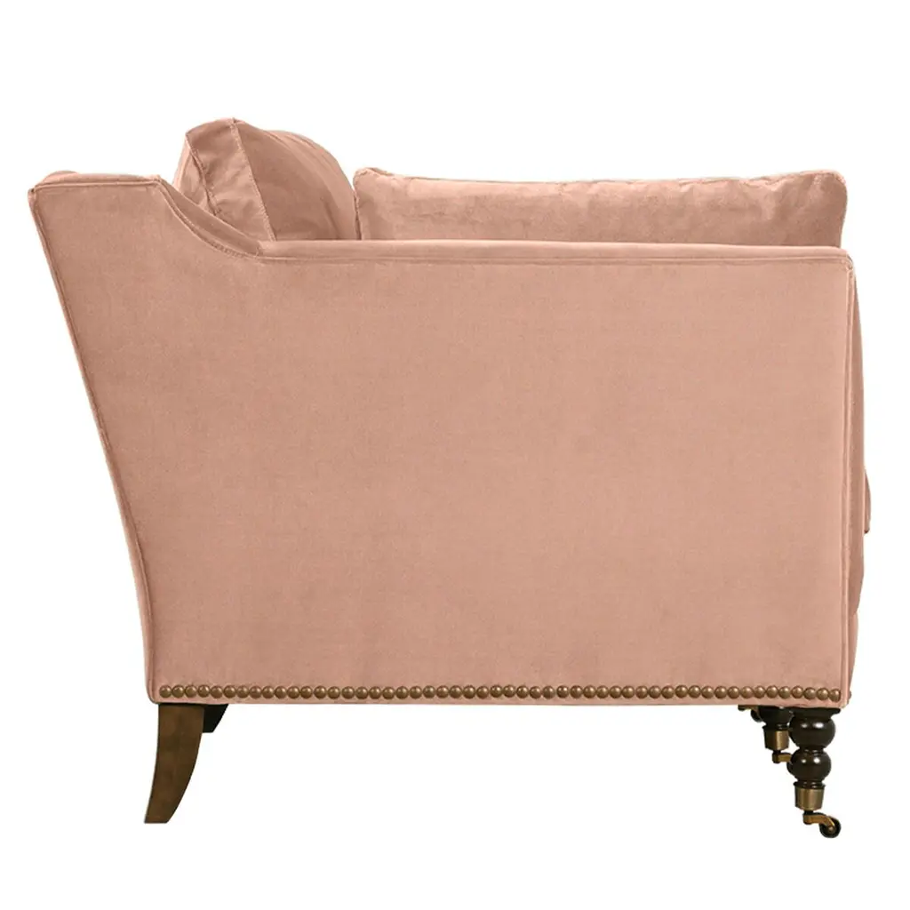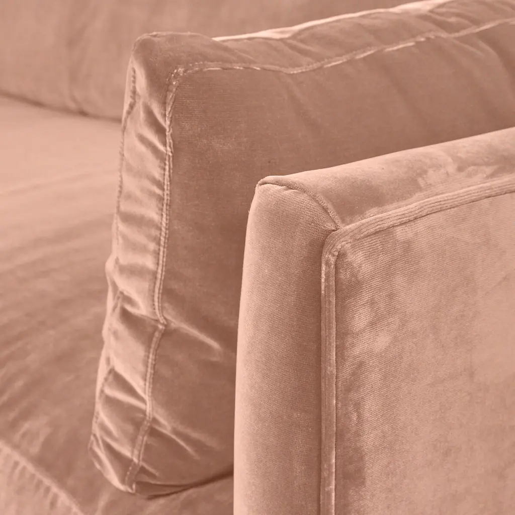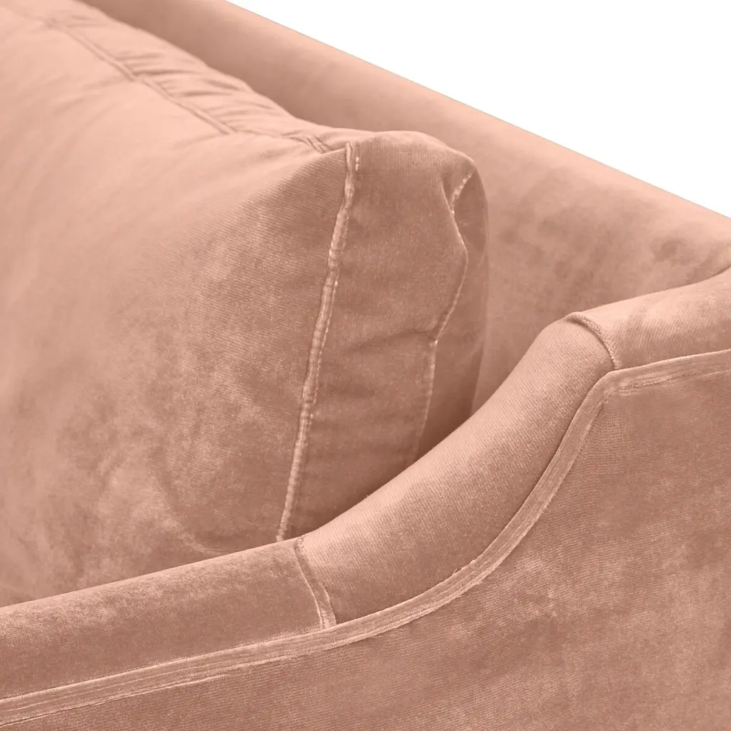 Exclusive to One Kings Lane: From its plush luxe velvet upholstery, boxy track arms to its turned front legs, this sofa is the ultimate in timeless elegance and sophistication. And thanks to its ample feather-and-down cushioning, it welcomes guests with long-lasting comfort and support.Also of note:• Brass casters on the front legs make the sofa easy to move without scratching your floors.• Frame: made of solid kiln-dried hardwood to withstand years of use.• Cushion Fill: cloud cushion features a high-resiliency foam core wrapped with a super soft foam layer then inserted into a channel-quilted casing filled with a blend of 50% fiber, 5% down, and 45% feather.• Seat Construction: Sinuous-springs system. Heavy-gauge steel springs are placed 4-5" apart for uniform comfort and doubled up on each end to withstand the wear and tear from everyday use.• Seat Comfort: The seat is plush yet supportive, cushions require regular fluffing and rotating to maintain their shape.• Comes with two lumbar pillows.