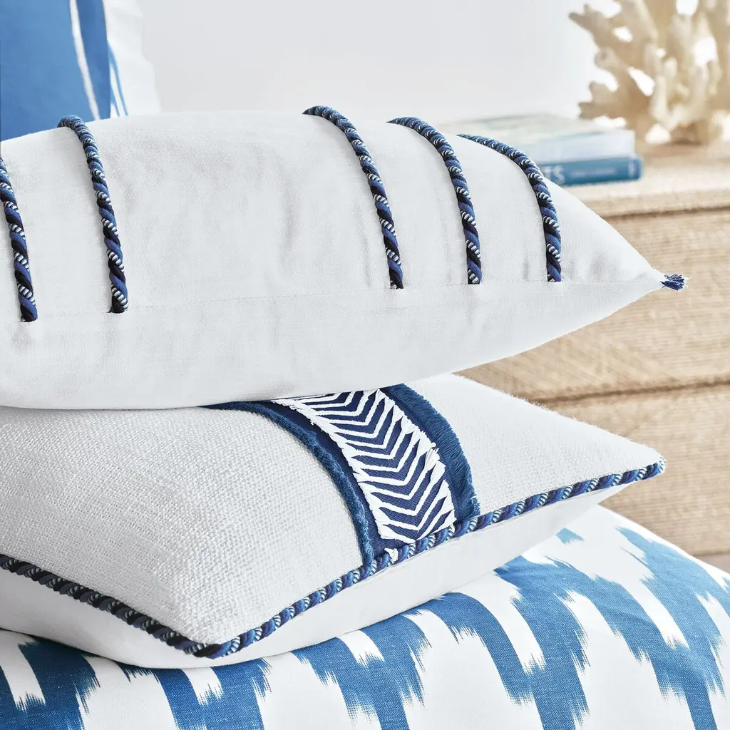 Marina Cord Stripe Lumbar Pillow, White/blue