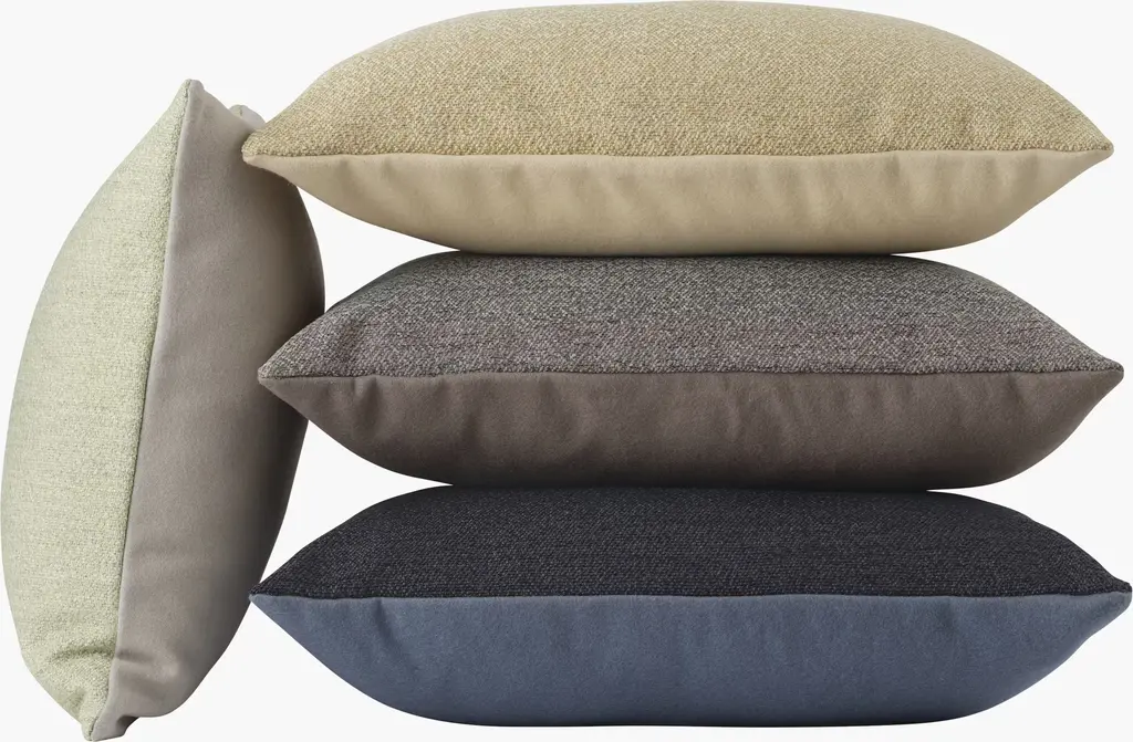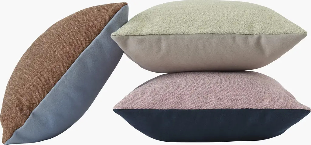 With each side upholstered in a different color and fabric, the Mingle Pillow (2023) is like having two pillows in one. Which side is the front? That's up to you, and you can change your mind whenever you wish. Mix, match, and mingle pillows to add color and texture to your sofa, bed, or chairs. Removable cover; dry clean only. Made in Turkey.