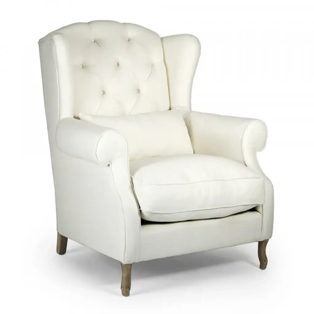 The chaise gets a dramatic update. Our Mirage Chaise has a welcoming, extra tall back and arms the perfect height for relaxing. Cloud 9 cushions provide exceptional comfort. Lumbar pillow for extra support. Maple legs with smoke finish. Also available as a Chair. Upholstered in your choice of designer fabrics. Exclusively from Annie Selke.