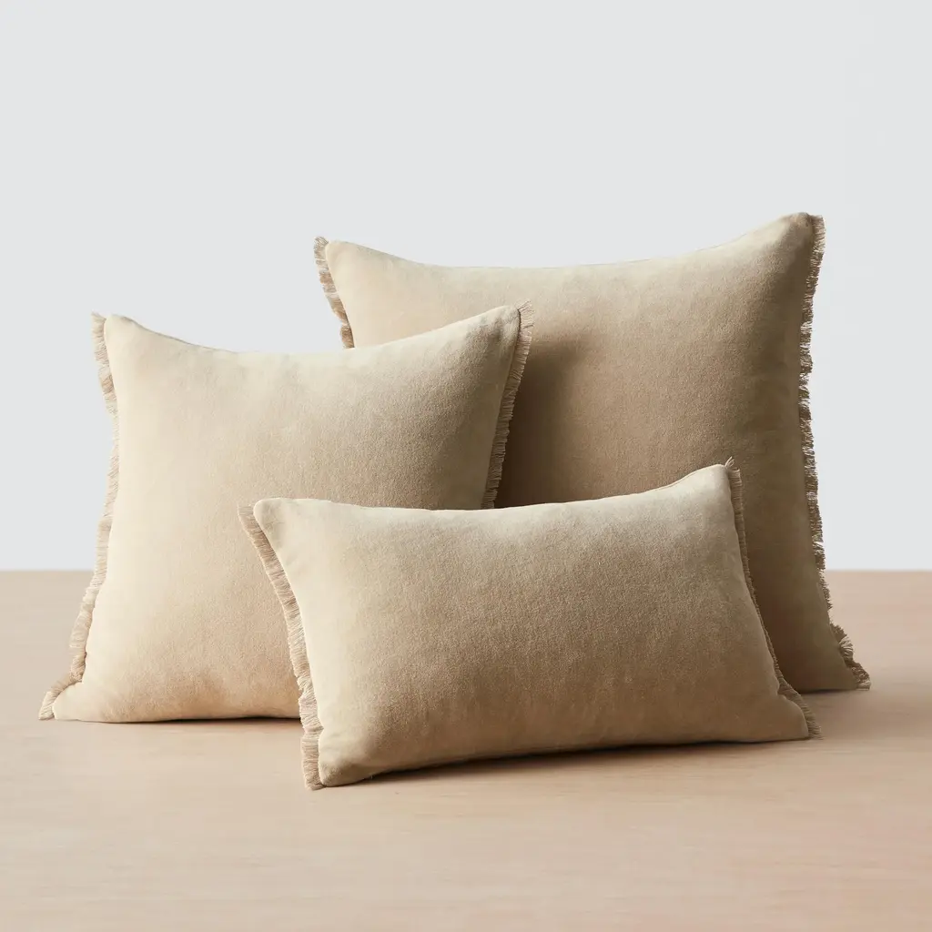 The perfect mix and match pillow for any space, this 100% cotton velvet lumbar pillow mixes earthy hues with cozy texture. This pillow comes ready to style with a down alternative insert. Cozier days start with cotton velvet. Crafted from 100% organic cotton velvet, this effortlessly luxe lumbar pillow warms up any space with calming earth tones. Accented with a half-inch fringe detailing, every piece can be styled solo or added as the finishing touch to your other pillows. Loomed by a collective of 200 weavers in Panipat, known around the world as India’s City of Weavers, every pillow is Oeko-Tex® and Global Organic Textile Standard (GOTS) certified. All sustainably made in a fair trade environment. This pillow comes ready to style. Cruelty-free down alternative insert included.