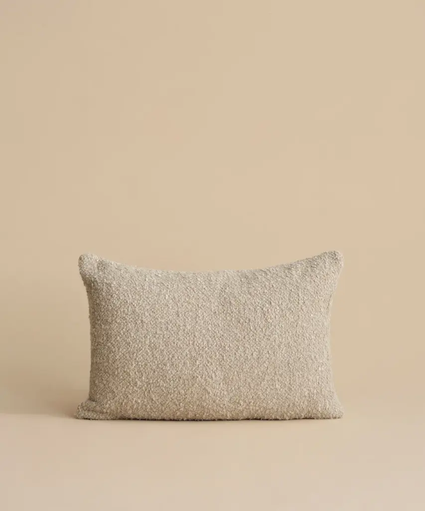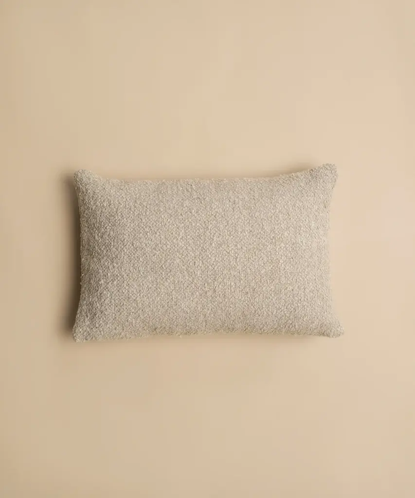 Nell Boucle Lumbar Pillow Natural Bring a touch of timeless boucle to any room in your home with our latest interiors essential. Designed to mix and match with ease, pair this piece with anything and everything in your space. We love layering the Nell Pillow with other staples for a seasonal refresh. Cover: 71% linen, 13.5% wool, 9.5% viscose, 6% polyester. Made of the same boucle fabric from our best-selling Pacific Bed, Brentwood Chair, and Brentwood Ottoman. Feather down insert included.