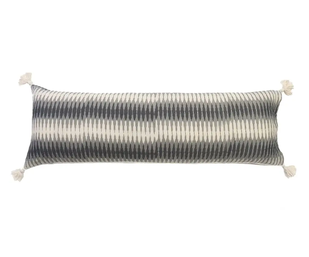 The tonal Newton Pillow features a double sided woven design thats a modern approach to plaid. Consists of 100% cotton fabric, knife edge finish, and a hidden zipper closure. Available in 2 colorways and 2 sizes as cover only or with a luxury down insert. Pair with the matching tasseled bolster to complete the look!