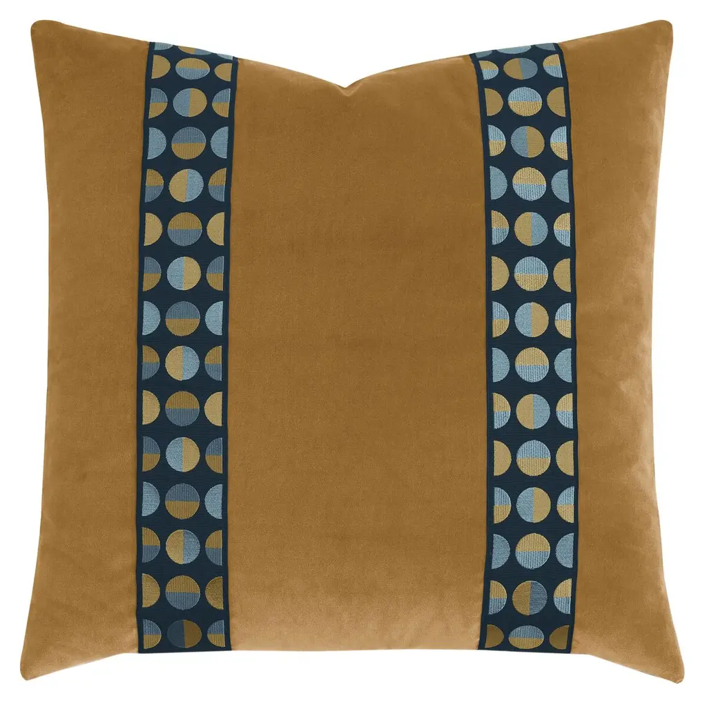 Nova Geometric Border Velvet Lumbar Pillow, Gold/blue