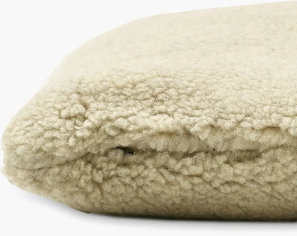 Crafted of pure wool, the Pasture Pillow features an apropos texture and appearance: It's soft and woolly. Perfectly sized for a sofa, accent chair, or bed, it can be used in residential and commercial contexts alike. It includes a cotton insert with down and feather fill. Made in New York.