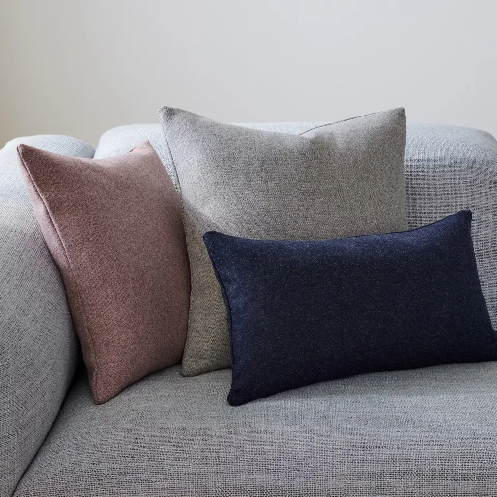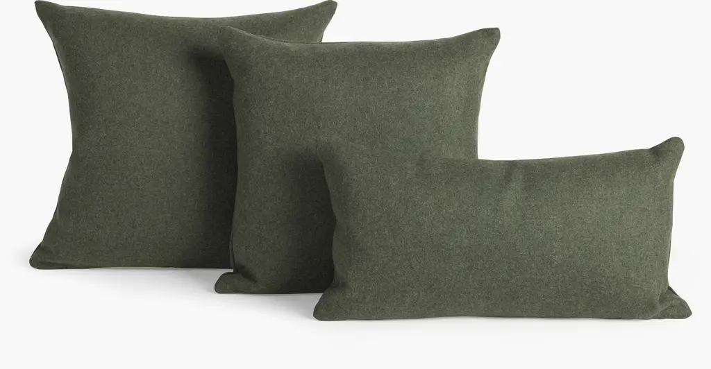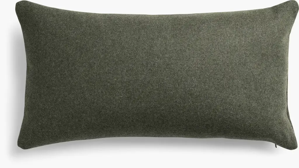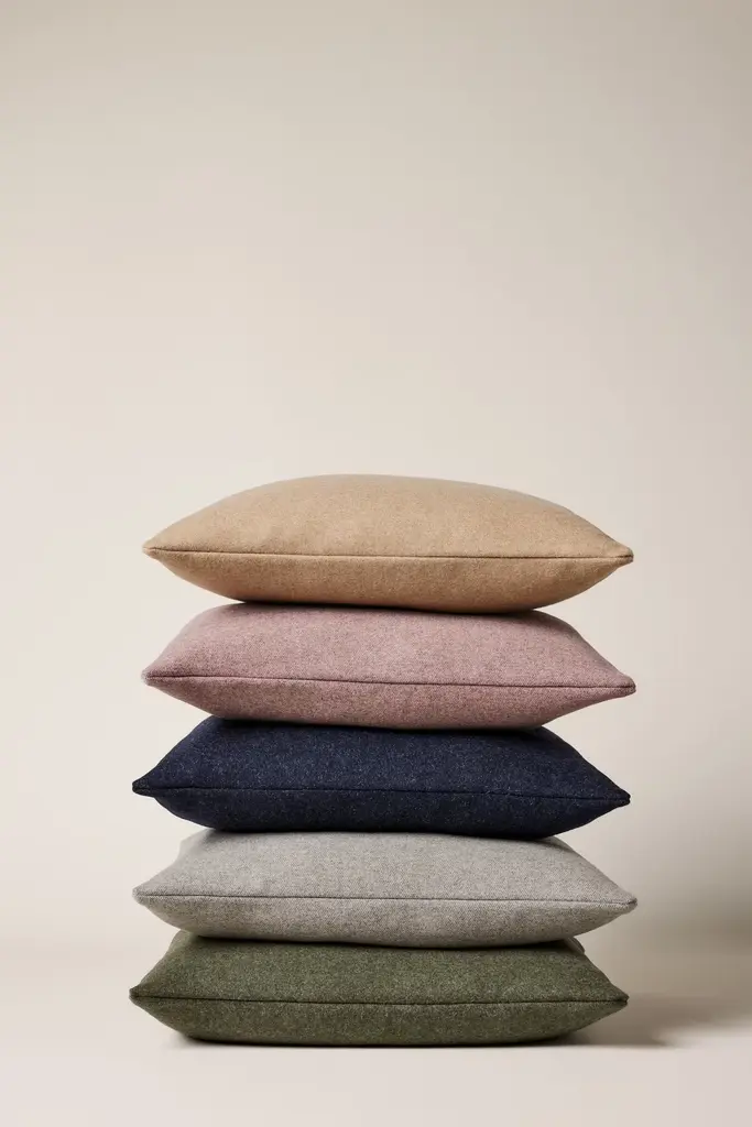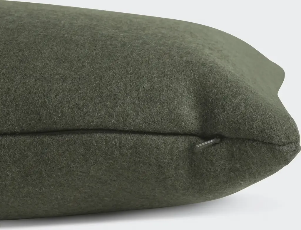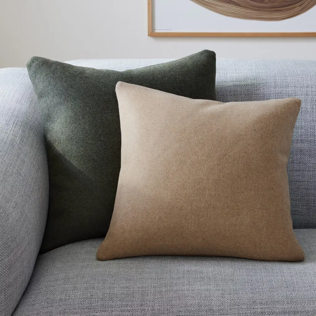 This pillow is upholstered with Pecora, an extraordinarily soft fabric with a subtly heathered appearance. It’s woven from a blend of Australian wool – considered among the finest in the world – and Peruvian alpaca, which lends a silky luster. Polyamide provides backbone while keeping to its supporting role. The result is a textile with quiet sophistication and impressive durability. The pillow is filled with RDS (responsible down standard) feathers and down. Made in USA of imported materials.