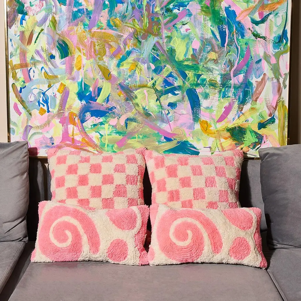 Pink And Cream Memphis Style Tufted Lumbar Pillow
