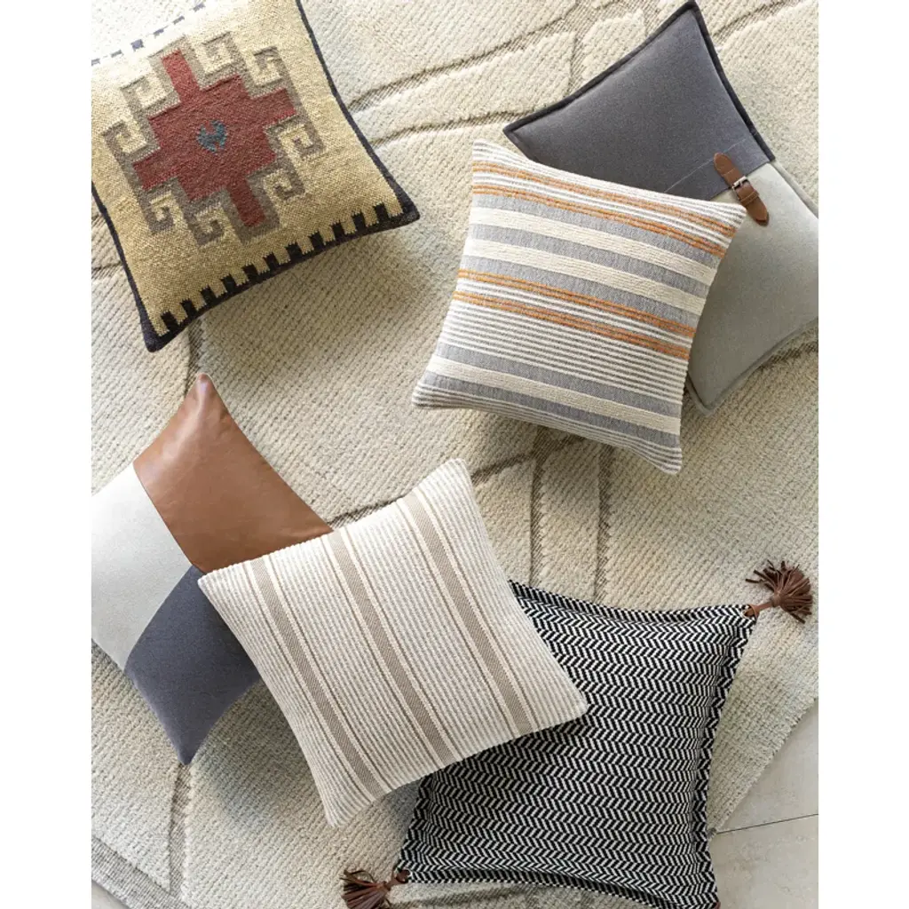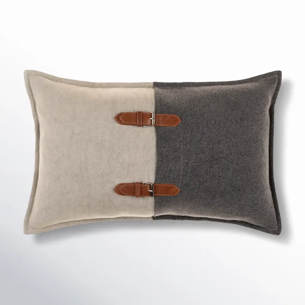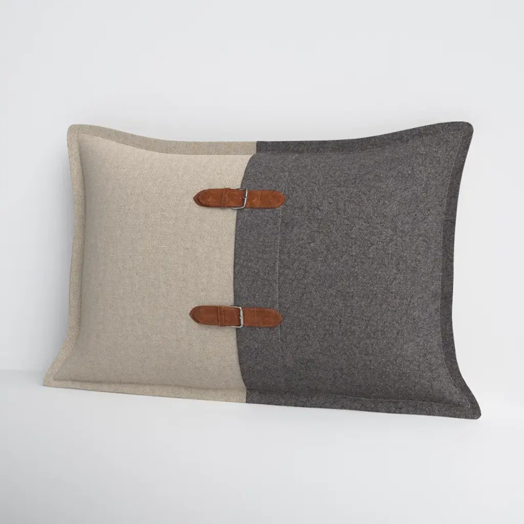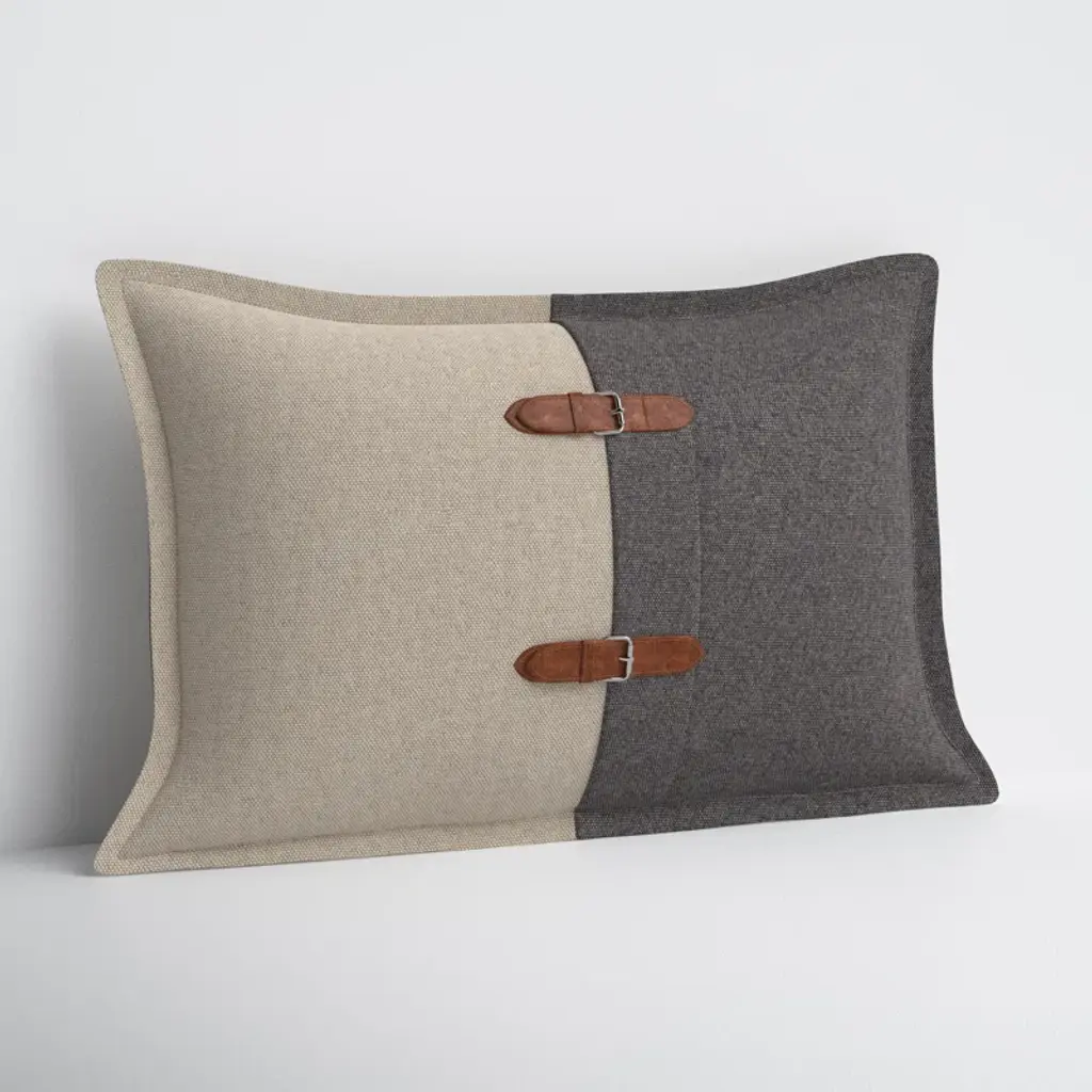 This lumbar pillow combines elegant neutral hues and a mix of materials for an earthy, organic look you'll love to show off. The cover is made from a cotton blend with two contrasting sides of taupe and charcoal accented with a leather belt buckle closure. The textured, tweed-like look of the cotton adds even more visual interest, while the knife edges add a sophisticated touch. This pillow comes with your choice of insert, so you can customize how soft or firm it is. Upkeep is easy: Simply remove the insert with the zipper closure and spot-clean the cover.