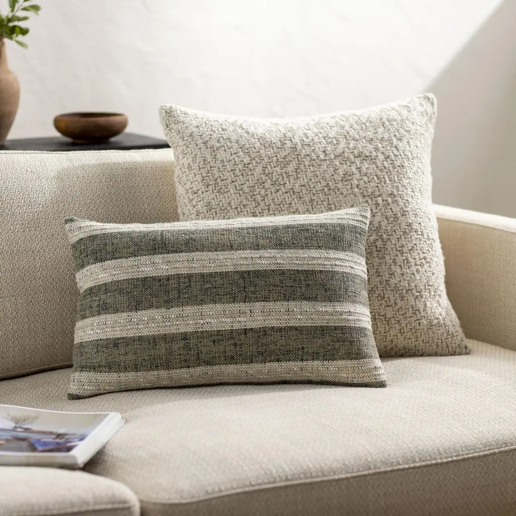 Raelis Stripe Accent 13"x20" Lumbar Pillow, Green