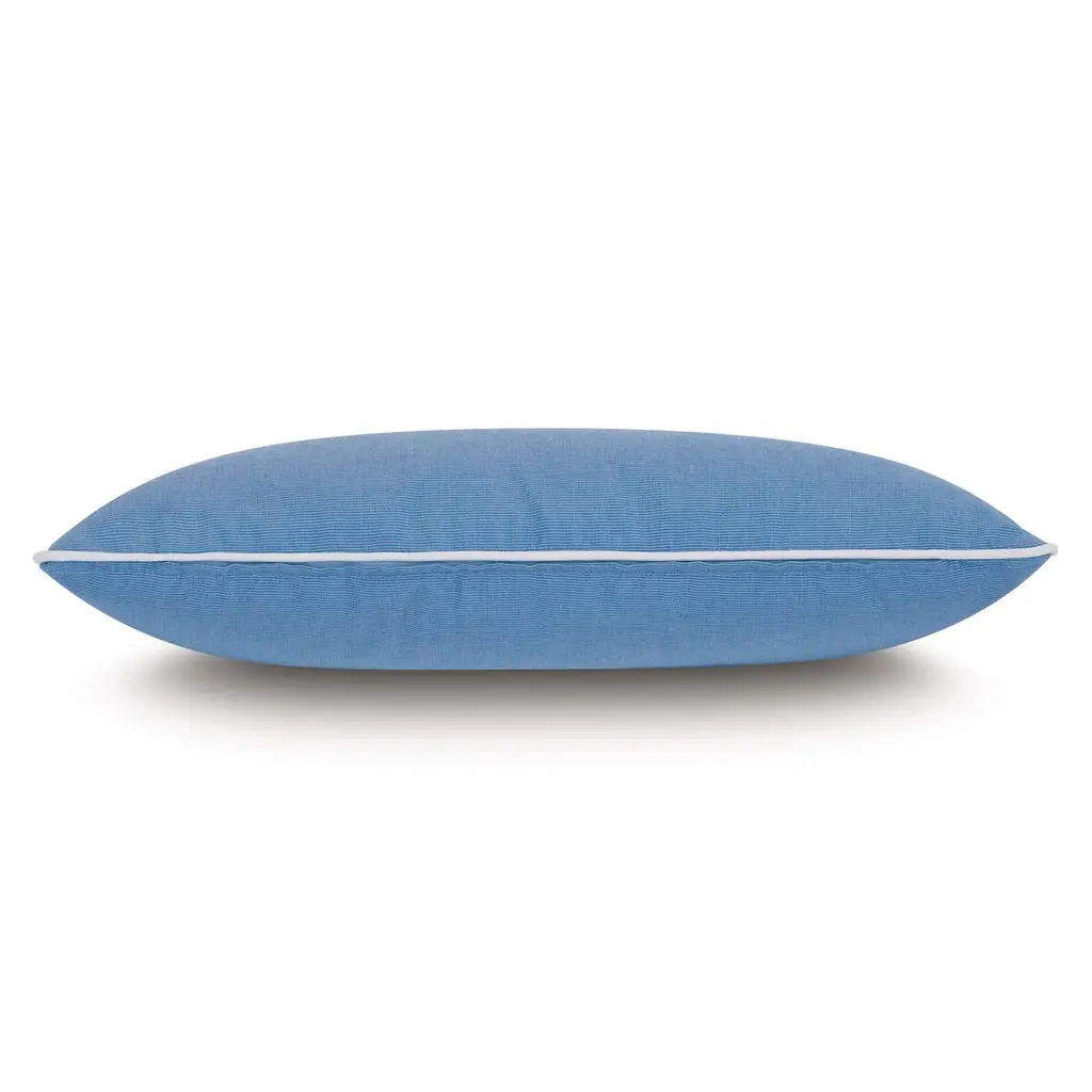 Designed by us and available only at One Kings Lane: The color of a cloudless sky, this lumbar pillow is certain to brighten up any outdoor space. And because it's made of durable, easy-to-clean Sunbrella fabric, it resists fading, mold, and soil. White piping adds a tailored touch.