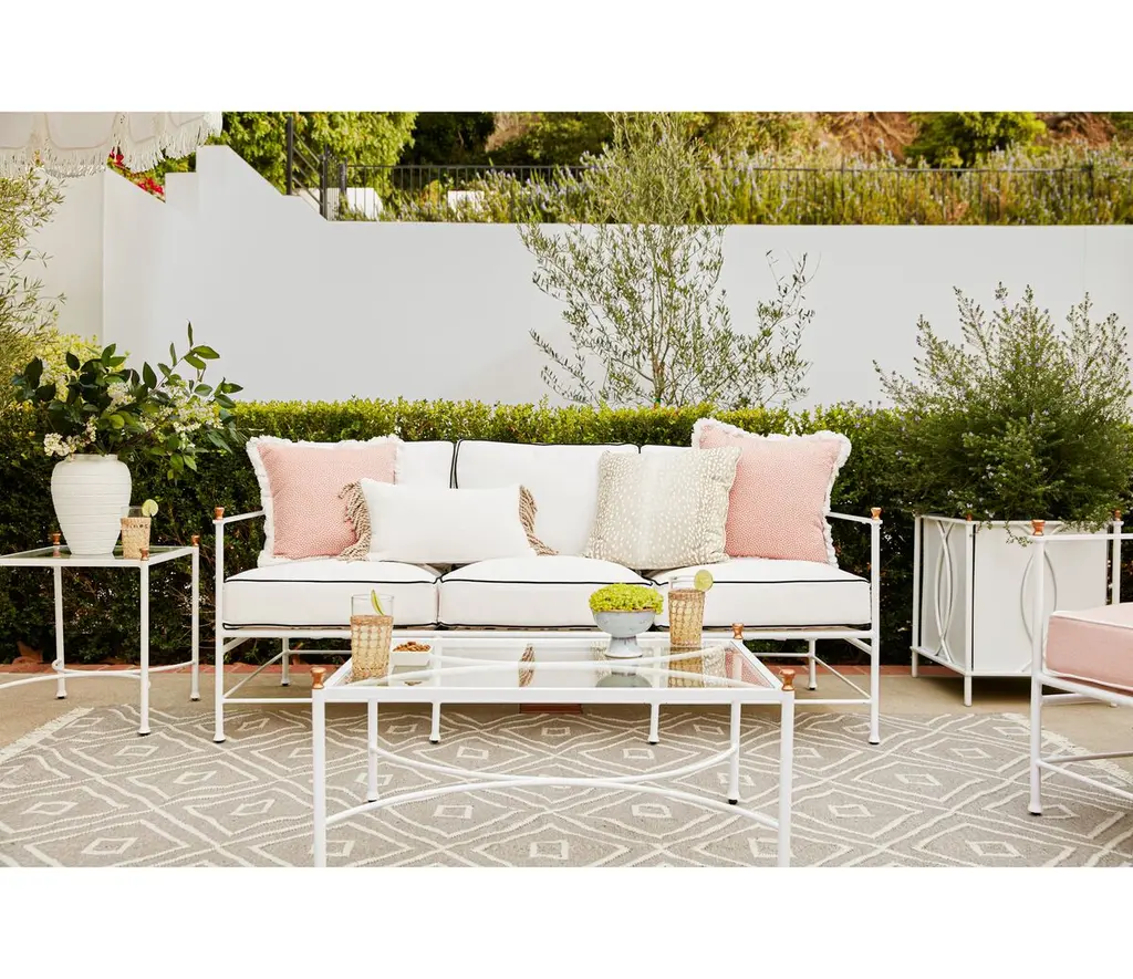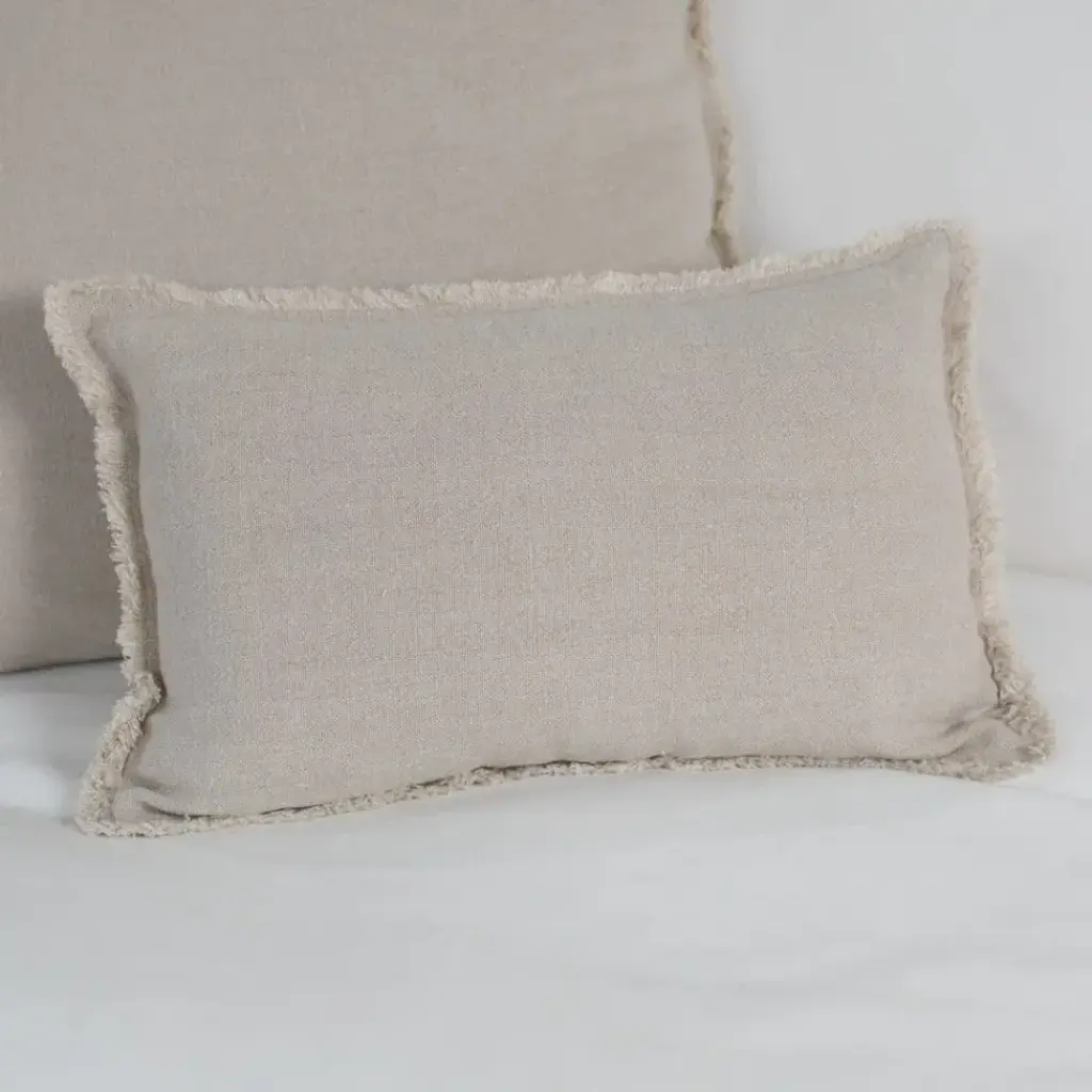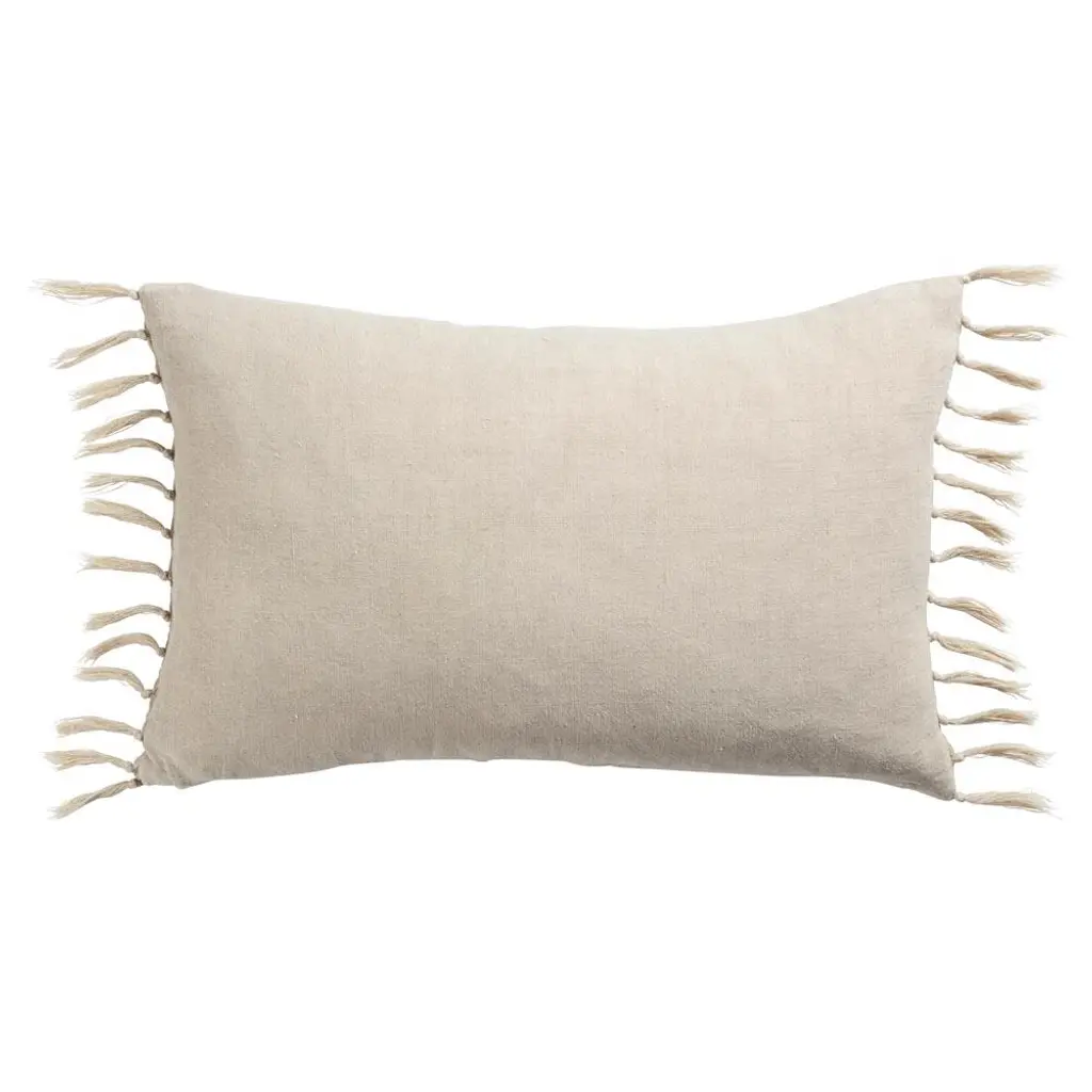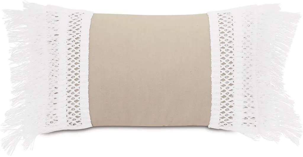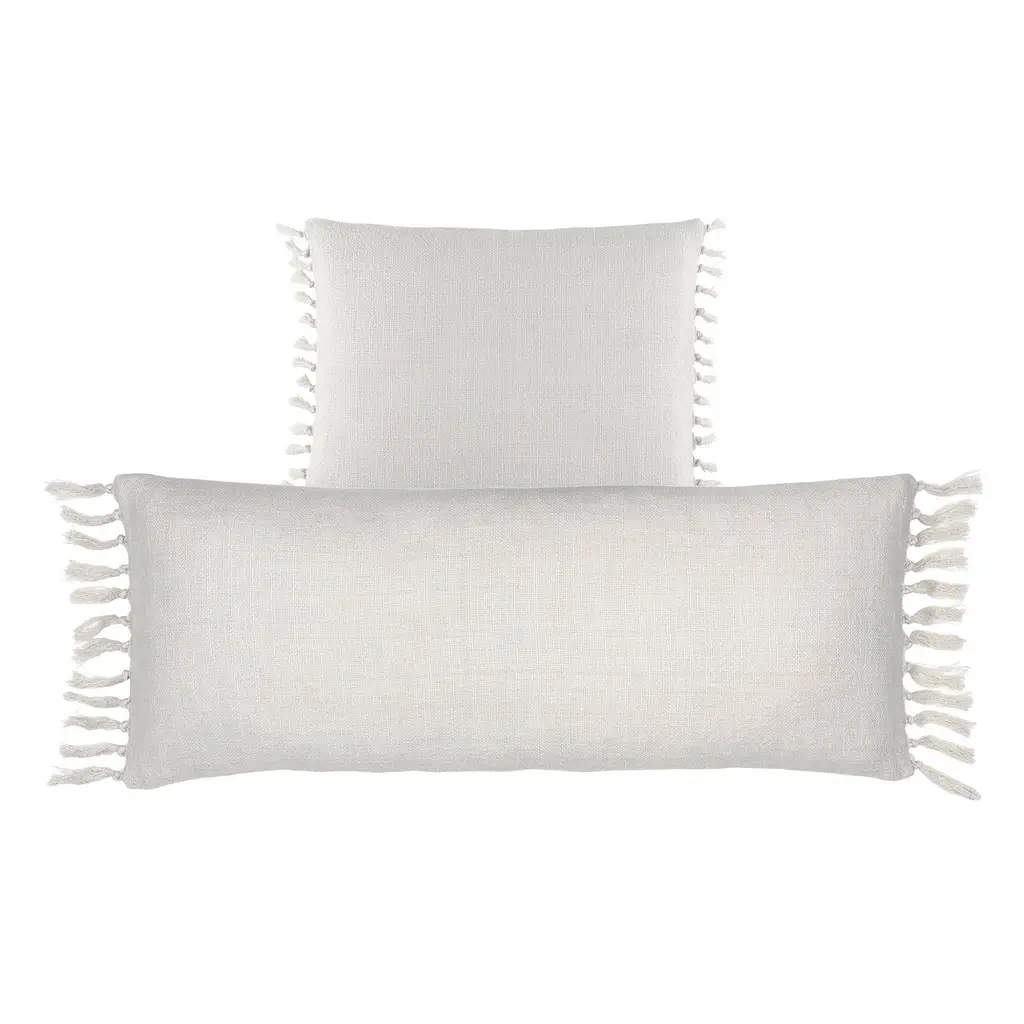 Exclusive to One Kings Lane: Thick fringe adds time-honored flair to this plush white lumbar pillow. Made of mold-resistant, soil-resistant, and easy-to-clean fabric, the pillow comes with an equally weather-resistant insert.
