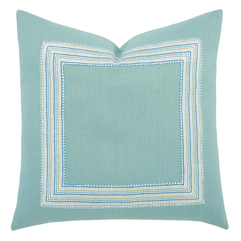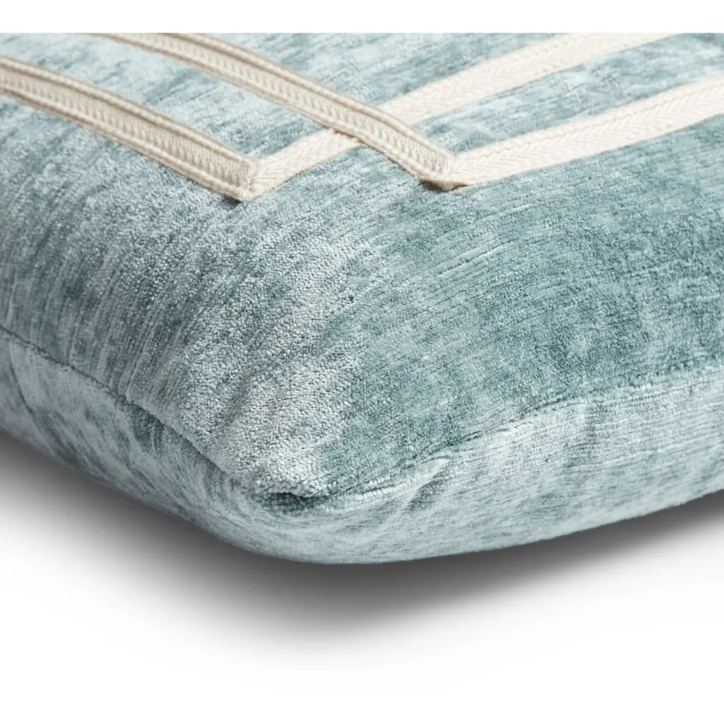 Designed by us and available only at One Kings Lane: A sophisticated accent for the sofa, this plush pillow is made of blue velvet with wonderfully textural white trim. Insert included. Zipper closure.