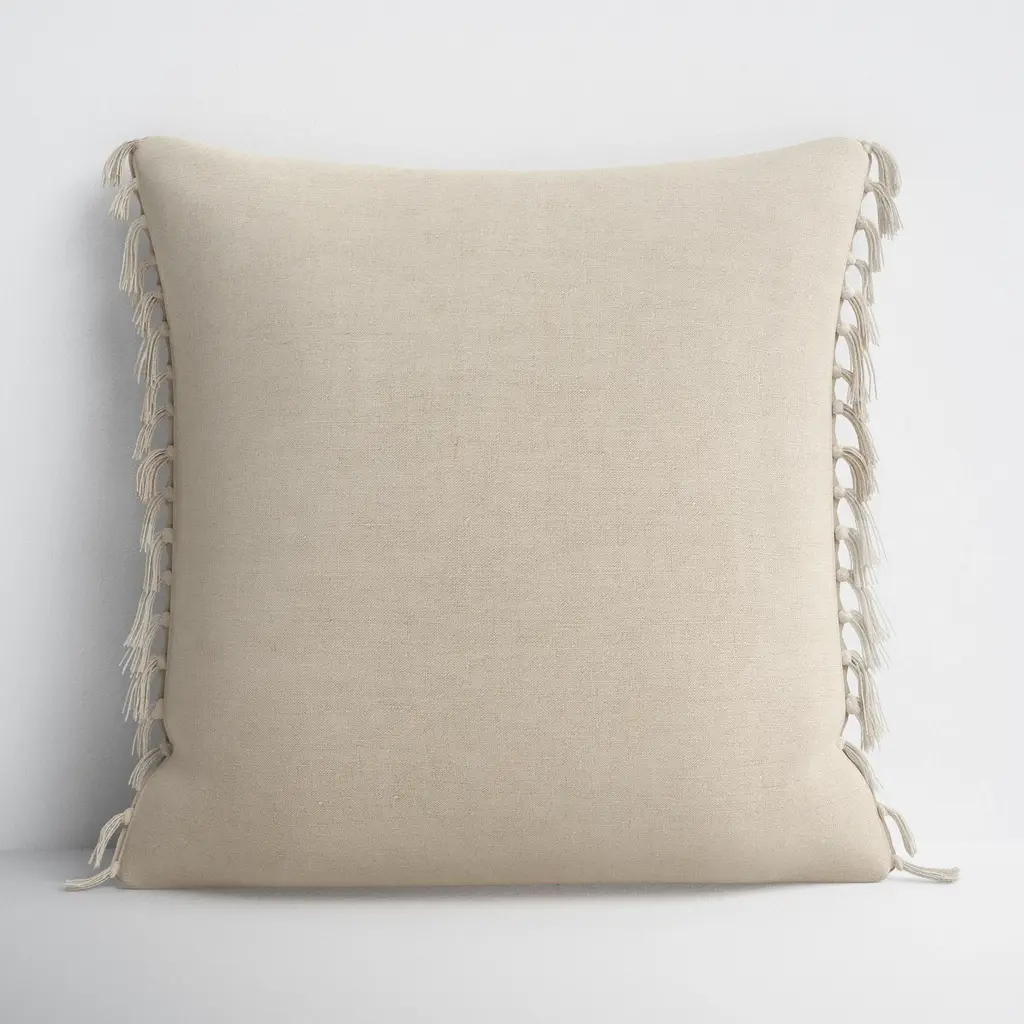 Simple colors, a cozy texture and pom poms are what we love most about this decorative pillow. Made in Morocco from 100% cotton, this throw pillow is made to give you style in your space for years to come.