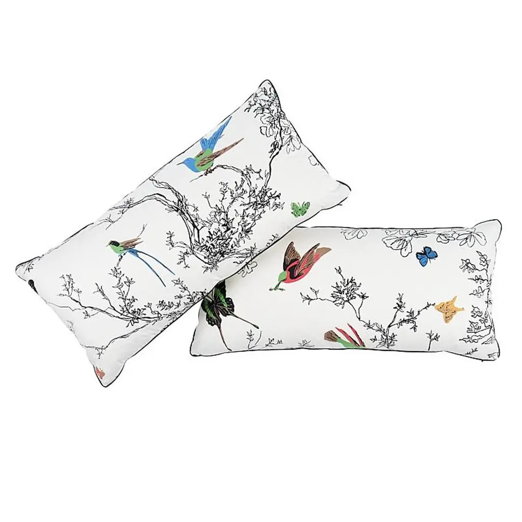 This 24" x 12" pillow features birds and butterflies, our celebrated and ever-popular pattern derived from a hand printed 1960s wallcovering in the Schumacher archives. Shown here in multi on white and finished with a contrast cord, whimsical creatures take flight amid twining foliage. 100% cotton. Content: 100% cotton Made with our Birds & Butterflies Fabric, (Item# 174760).If out of stock, lead-time is 15-20 business days approximately.
