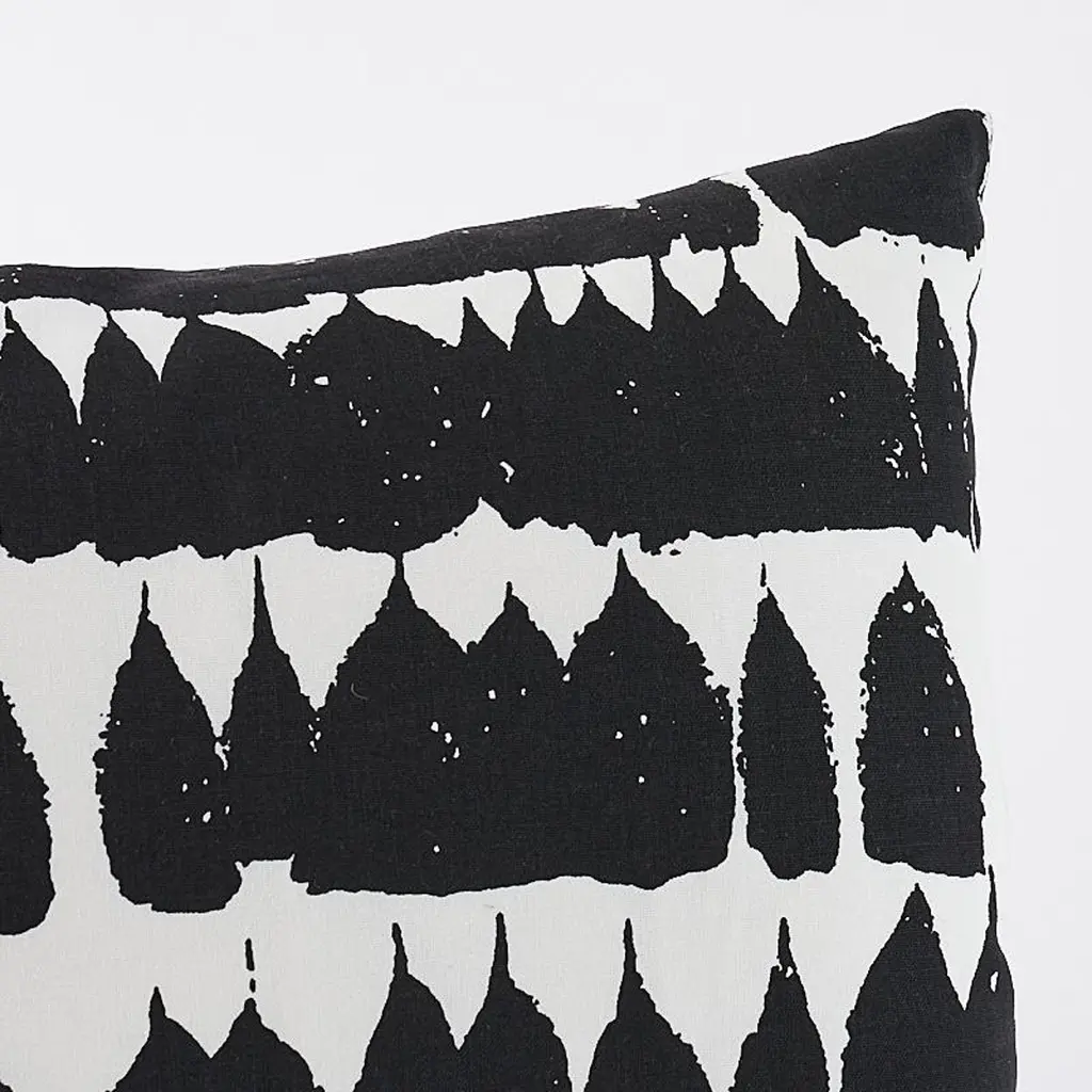 This pillow features Queen of Spain Fabric (Item# 175200) with a Knife Edge finish. Introduced in 1963 and still fresh today, this pattern has a lively, painterly quality- and is a wonderful example of mid-century design. Pillow includes a feather/down fill insert and hidden zipper closure. If out of stock, lead-time is 15-20 business days approximately. Since Schumacher was founded in 1889, our family-owned company has been synonymous with style, taste, and innovation. A passion for luxury and an unwavering commitment to beauty are woven into everything we do. Pillows and Accessories Product Detail Pattern Name: Queen of Spain Color: Black Fully Wrapped (pattern on both sides) Hidden Zipper Closure Knife Edge Feather/Down Fill insert included Content: 100% cotton Pillow Measures 20" x 14" Sold individually.