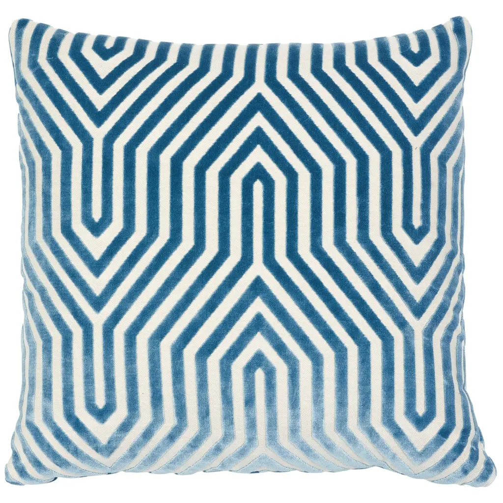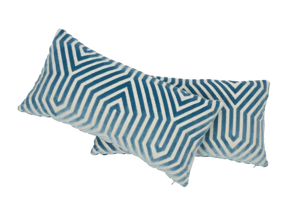 This 12" x 24" pillow features Vanderbilt Velvet in Marine. A large-scale, linear design gives this Italian cut velvet fabric a graphic sensibility, while the silk-like pile adds extra dimension and a luxurious hand. Feather/down insert included; knife-edge finish; hidden zipper closure. 87% Viscose, 13% cotton. Dry clean. Made in Italy. If out of stock, lead-time is 15-20 business days approximately. Since Schumacher was founded in 1889, our family-owned company has been synonymous with style, taste, and innovation. A passion for luxury and an unwavering commitment to beauty are woven into everything we do. Pillows and accessories Product detail Pattern name: Vanderbilt Velvet Color: Marine Hidden zipper closure Knife Edge Finish Feather/down fill insert included Content: 87% Viscose, 13% cotton. Performance: Martindale 40,000 Pillow measures 12" x 24".