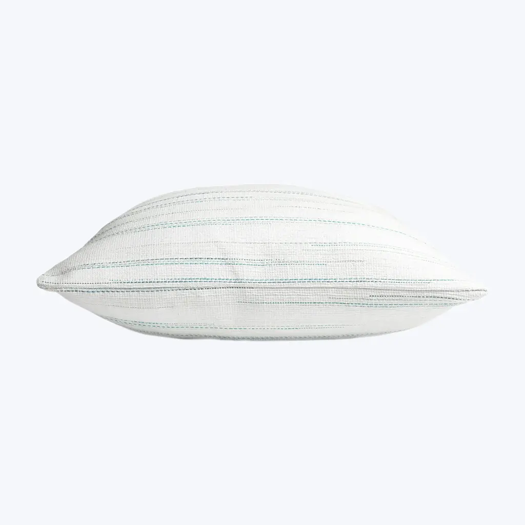 A study in timeless elegance, the Score Performance Pillow Aqua by Kevin O’Brien Studio brings a touch of coastal sophistication to refined outdoor spaces. This elevated pillow is handcrafted in weather-resistant performance fabric, designed for softness as well as everyday use. Made in the USA. Pair with the lumbar edition or the Stripe Ogee Performance Lumbar Pillow Aqua.
