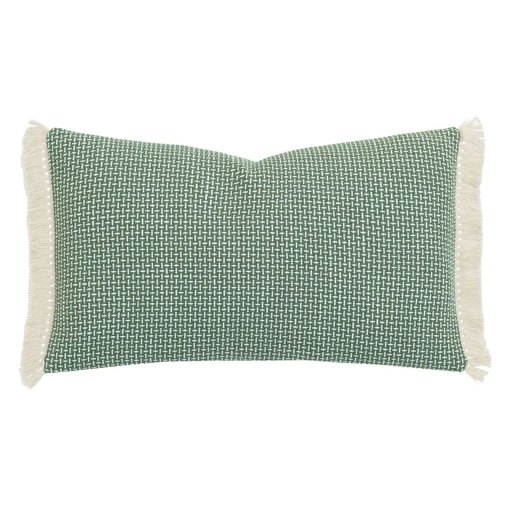 Serena Crosshatched Fringe Lumbar Pillow, Pistachio