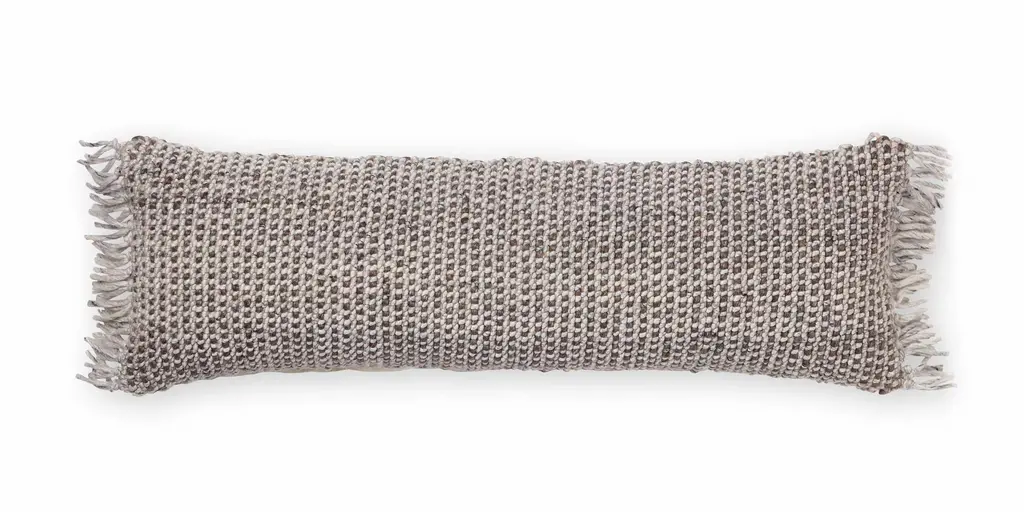 Serena Woven Chenllie Long Lumbar Pillow, Ivory/white