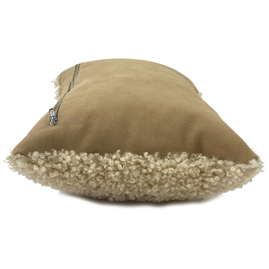 From gentle softness to the perfect lumbar pillow, this dark linen shearling sheepskin pillow brings natural styling to life with minimal fuss. The boucle style wool pile features a short curly wool which translates modern and stylish design paralleled with comfort and an expression of natural signature living.A beautiful display of texture and color that will uplift any piece of furniture with charm and charisma.This Australian made pillow is handcrafted by Artisans using high quality Australian shearling sheepskin, complimented with a tan suede leather reverse and decorative metal zipper. The richness in texture is inviting and emulates softness, quality and craftsmanship, with the cushion measuring approximately 14" x 24" with wool pile.Eluxury Home are innovators in animal skin and sheepskin home decor, offering customized make for any shape and size pillows and seated cushions.Features:Australian shearling sheepskinColour: Dark LinenFront sided sheepskinReverse suede leatherSize: 35 x 60cmWool pile: 12-14mm (up to 1/2" pile)Made in Australia Feather cushion insert includedProduct care for your Shearling Pillow:Keep away from direct sunlightProfessional dry clean onlyDo not wash or submerge into waterShake out often to remove dust or give light vacuumSpot clean only with gentle wool detergent.Do not brush.Professional dry clean only.