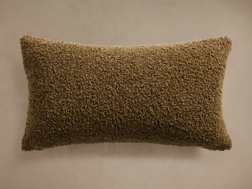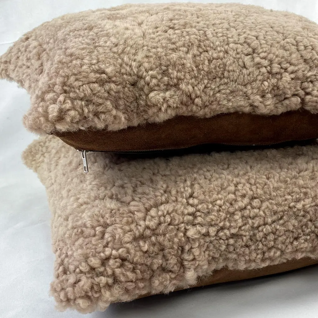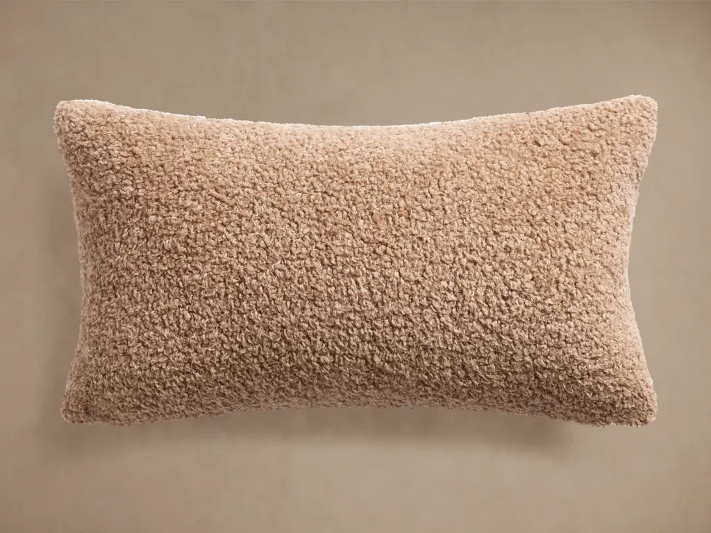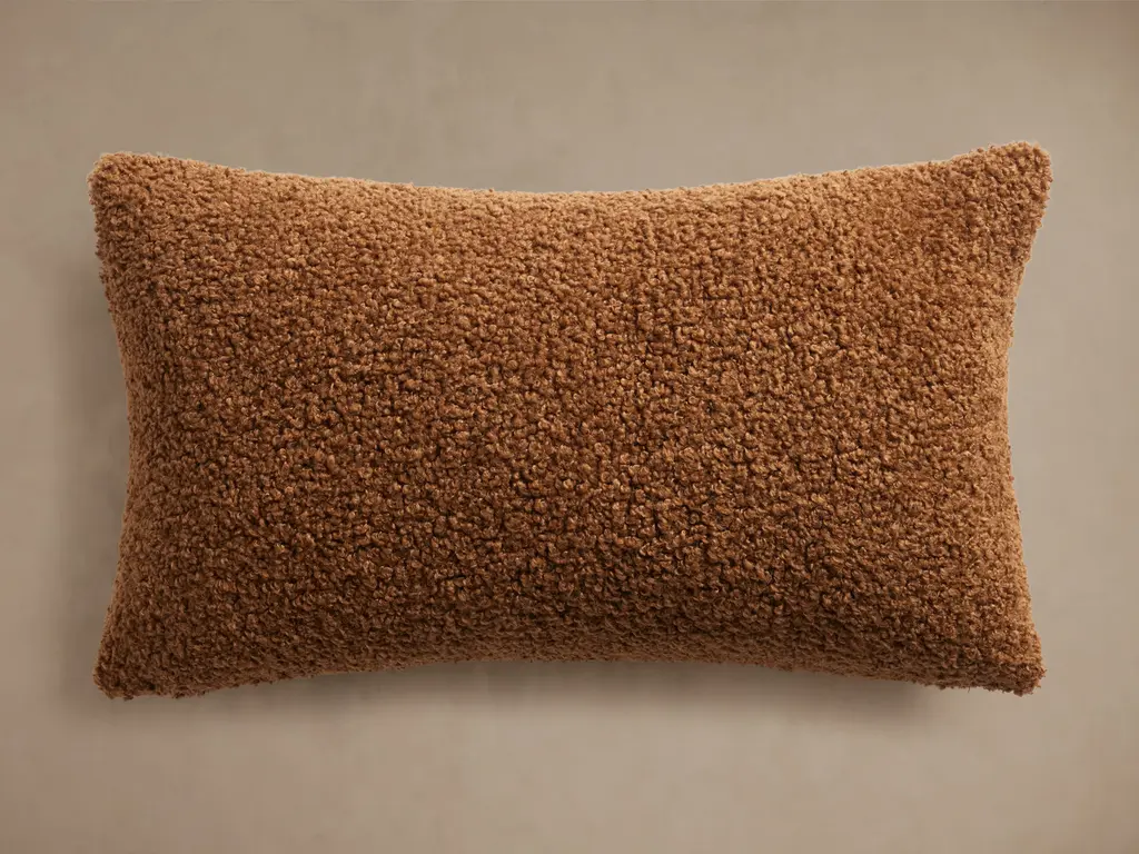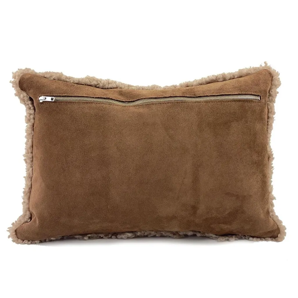 Elevate the comfort and textural elements to your decor with this lumbar shearling pillow. The shearling, is a genuine Australian sheepskin featuring a short and curly wool pile in a blend of lighter brown tones that will add inviting and alluring textures to a room. Part of the boucle collection, this shearling pillow translates contemporary and stylish design while expressing sustainable and natural living.Designed and individually hand-crafted in Australia the 35 x 60cm lumbar cushion is made from high quality shearling sheepskin. The single sided shearling pillow front is complimented with a genuine suede leather reverse and fitted with a 100% feather insert, for additional comfort to complete the natural and sustainable design.Designer, Emily Barbara is an innovator of home decor using sustainable animal skins, leathers and sheepskin. The Boucle cushion collection is available in a range of shapes, sizes and colors and also can be customized to suit your décor and project needs.Cushions sold as single units. Features:Australian shearling sheepskinColour: HazelnutFront sided sheepskinReverse, genuine suede leatherSize: 35 x 60cm / 14x24"Wool pile: 12-14mm (up to 1/2" pile)Made in Australia Feather cushion insert includedNatural product:It needs to be celebrated that this shearling pillow is made from 100% natural product. Variation between each pillow will occur in the wool pile texture and colour tones. The reverse is genuine suede leather, natural markings and leather imperfections are classed as natural characteristics.Product care for your shearling pillow:Keep away from direct sunlightProfessional dry clean onlyDo not wash or submerge into waterShake out often to remove dust or give light vacuumSpot clean only with gentle wool detergent.Do not brush.Professional dry clean only.