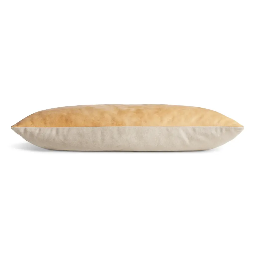 Fiber and feather fill pillows get a two-tone treatment of contrasting fabrics that play nicely together to enliven and soften sofas, lounge chairs, beds or even the floor. Available in a variety of materials and sizes.